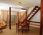 Номер состоит из гостиной-кухни, трех/четырех спален, двух санузлов, сауны.