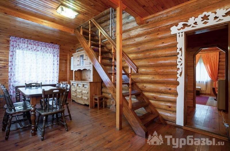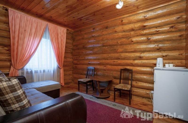 Симпатичные срубы из цельных бревен в стиле древнерусского зодчества расположились на лесной опушке и стали частью этого незабываемого пейзажа.