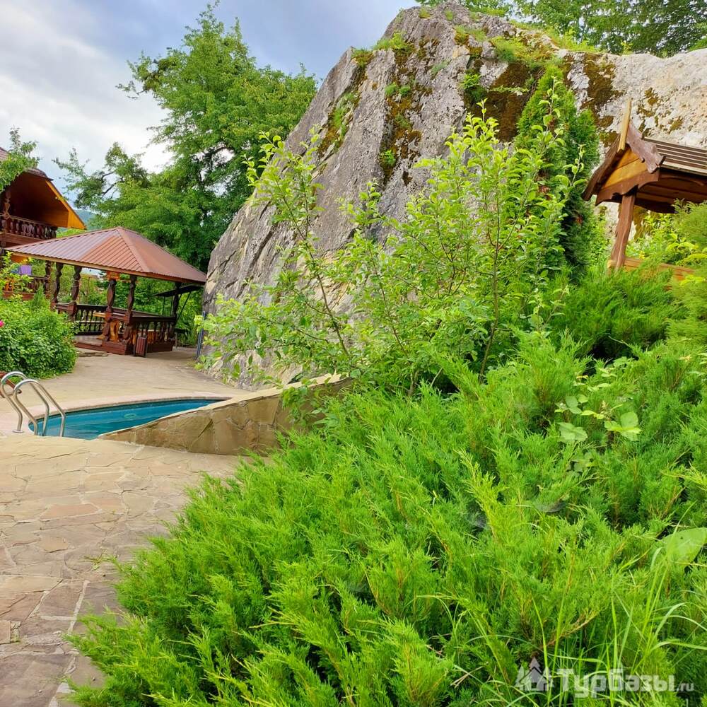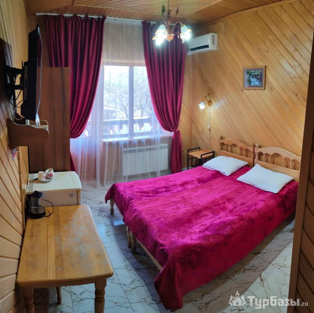В районе плоскогорья Лаго-Наки, там, где возвышается гора Школьная, Вы найдете гостиничный комплекс «Любава +» - бревенчатое строение для гостей.