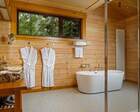 Шале для проживания изготовлено из экологически чистого кедра. Внутренняя отделка комбинируют в себе неповторимый дизайн и экологически чистые материалы. Турист получает качественный и уединённый отдых в заповедной зоне. Гостям предложены интересные развлечения, поездки на катере и не только.