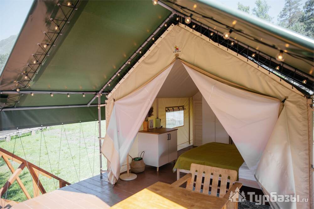 Бадан — уютный глэмпинг на душевном Алтае, где эстетика сафари-тента соседствует с мощью гор и спокойным журчанием реки. Это не просто ночёвка на природе — это место, где каждая деталь продумана, чтобы отдых получился мягким, тёплым и немного волшебным.