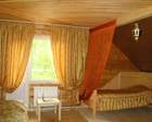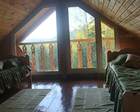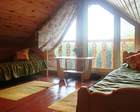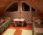 Гости проживают в огромном доме из кедрового бруса. Здесь для гостей предусмотрены летние веранды, просторные номера. На первом этаже оборудована просторная гостиная комната. Можно организовать барбекю. Для этого имеется большой обеденный стол под навесом.