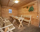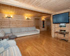 Первый этаж домика занимает просторная гостиная, где есть камин и домашний кинотеатр. Отдыхающие могут посещать кедровую баню-парилку, где нагрев помещения осуществляется с использованием березовых дров. Есть комната отдыха. На площадке перед комплексом обустроено специальное место для приготовления барбекю. Установлена беседка. Для личного авто имеются места на автомобильной стоянке.