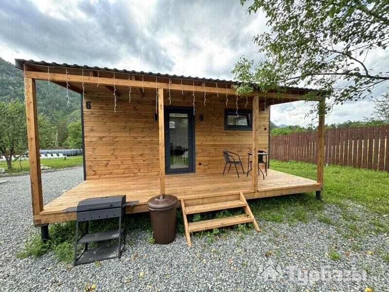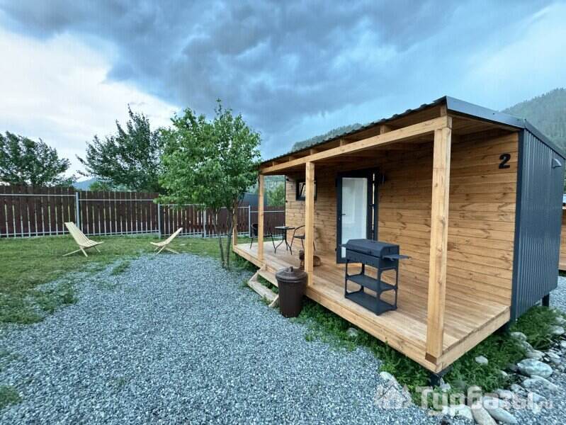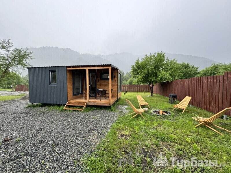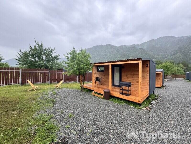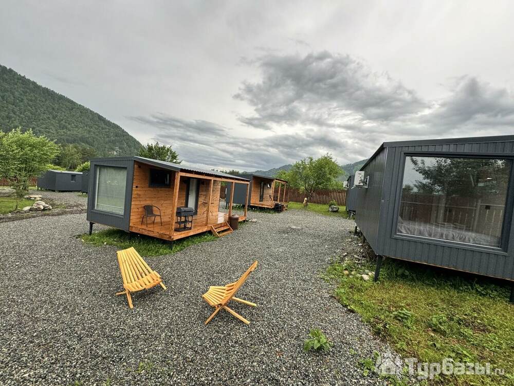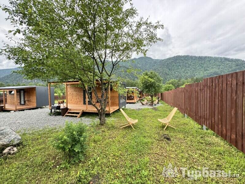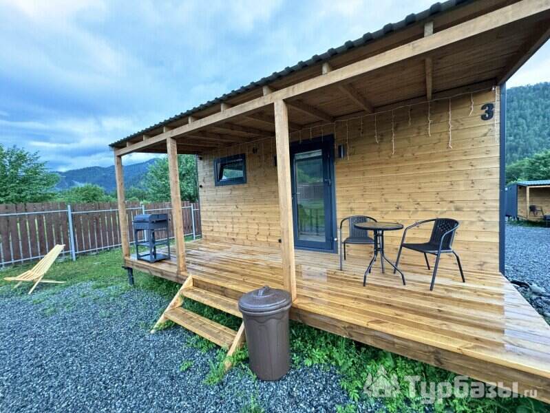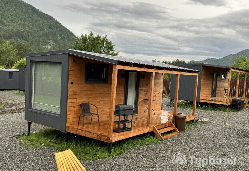 Глэмпинг предлагает компактные двухместные и четырёхместные домики с кухонной зоной, кондиционером, собственной ванной и террасой — формат «как дома, но в горах». На территории есть мангальные площадки, место для костра, зона шезлонгов и — приятная неожиданность для Алтая — открытый бассейн в тёплый сезон. Всё это рассчитано на гостей, которые хотят сочетать свободу самостоятельного проживания и сервис небольшой базы отдыха.