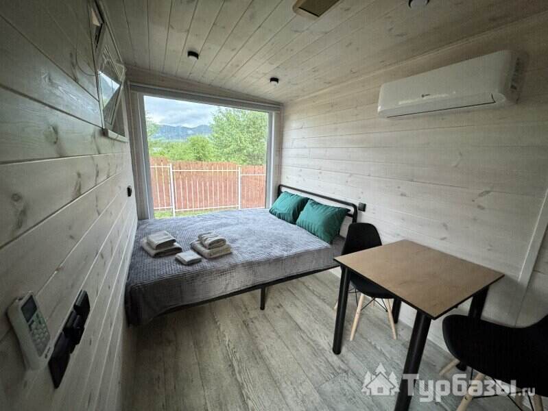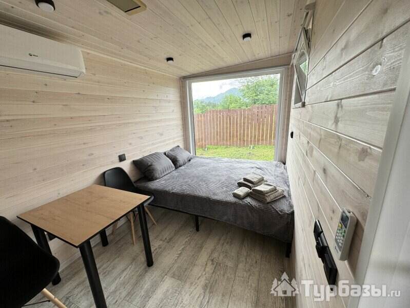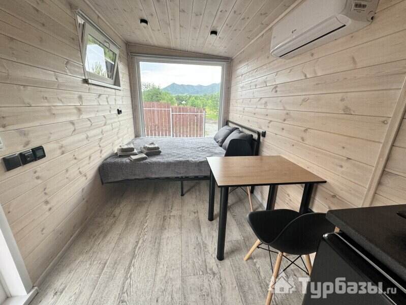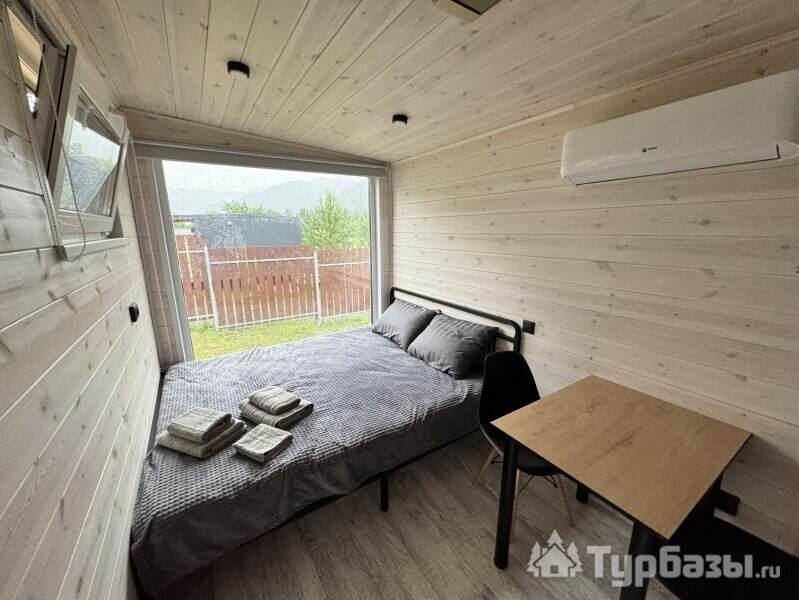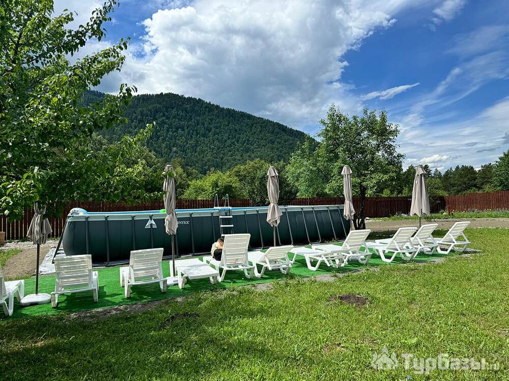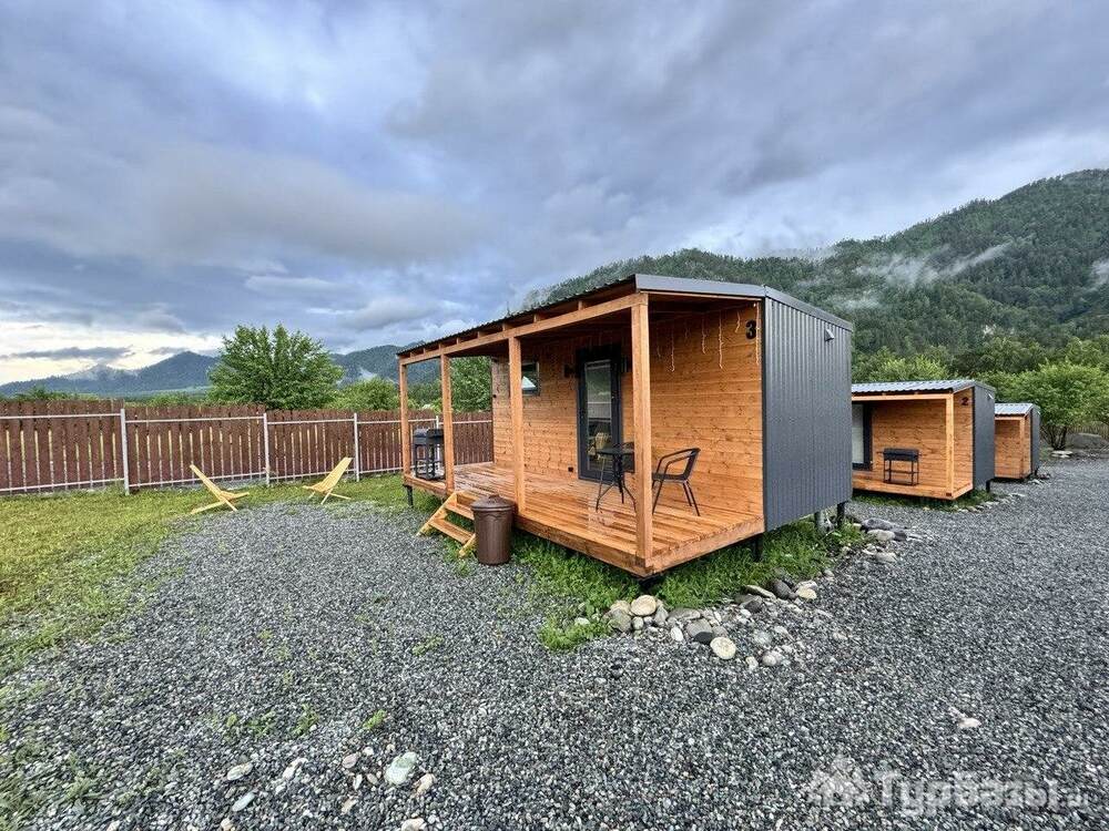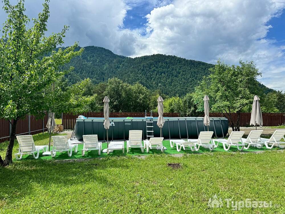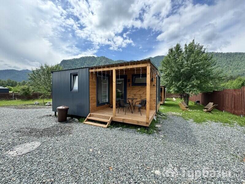Глэмпинг предлагает компактные двухместные и четырёхместные домики с кухонной зоной, кондиционером, собственной ванной и террасой — формат «как дома, но в горах». На территории есть мангальные площадки, место для костра, зона шезлонгов и — приятная неожиданность для Алтая — открытый бассейн в тёплый сезон. Всё это рассчитано на гостей, которые хотят сочетать свободу самостоятельного проживания и сервис небольшой базы отдыха.