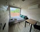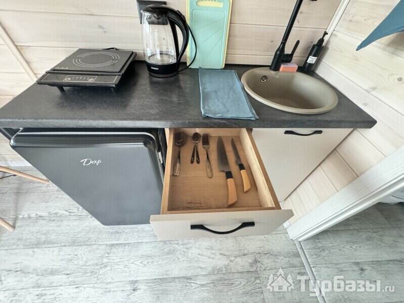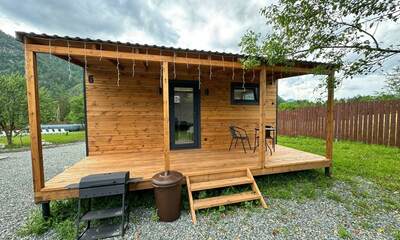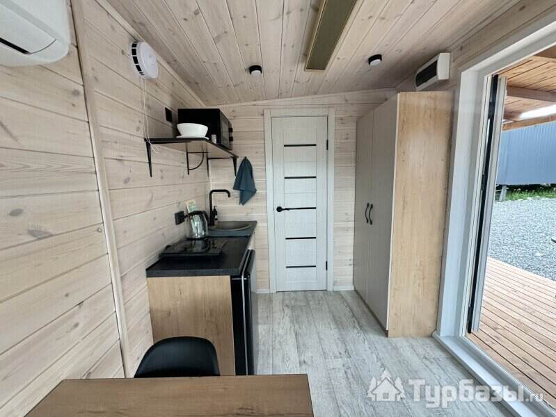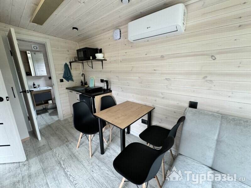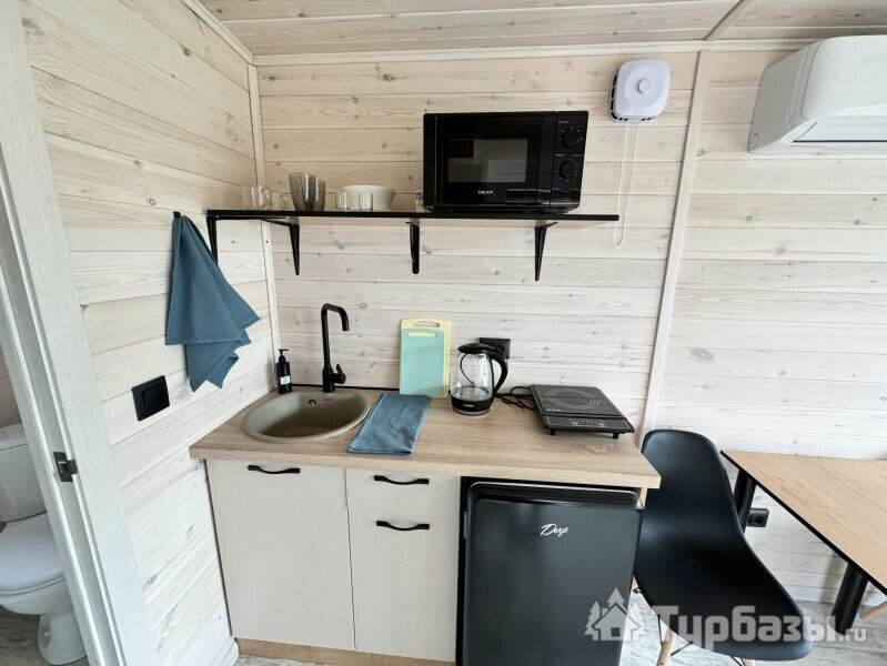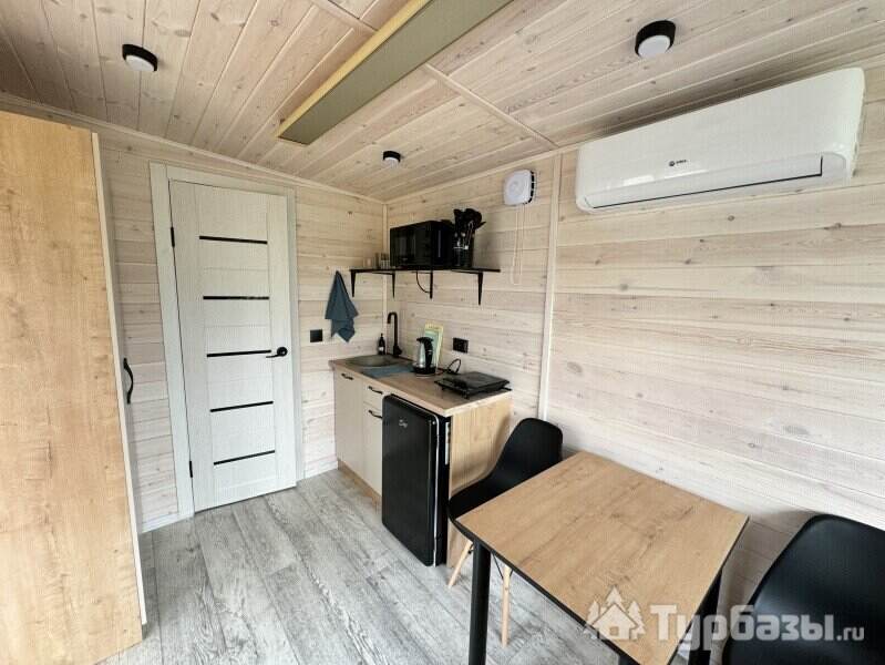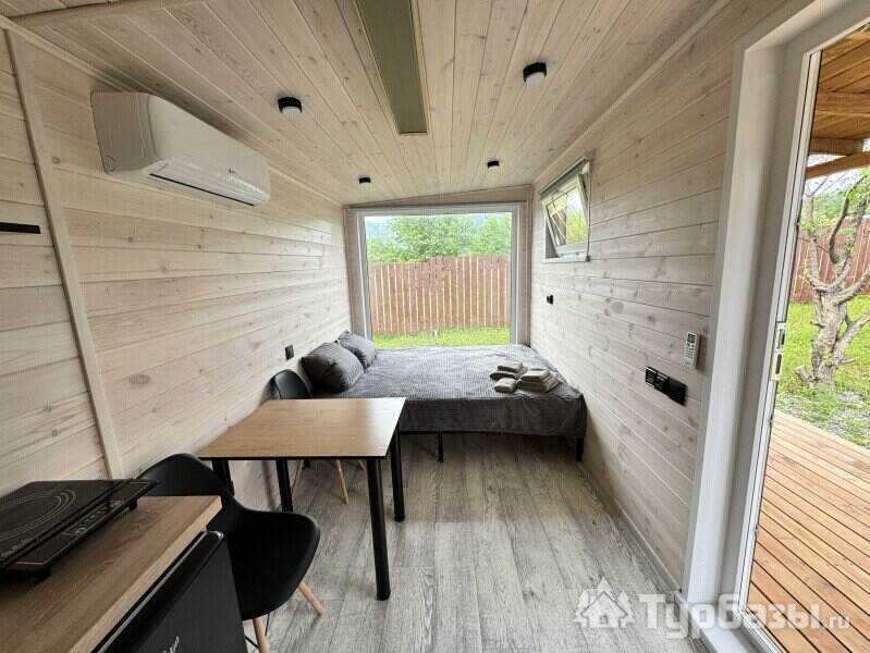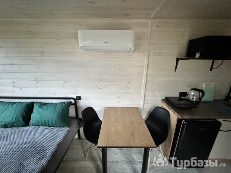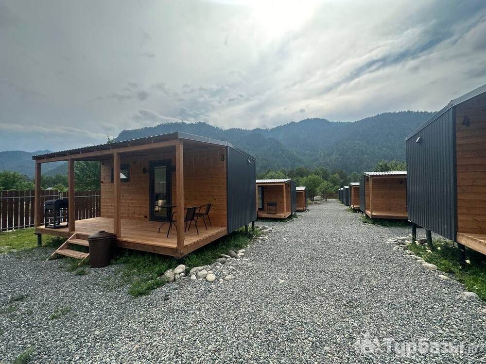 Глэмпинг предлагает компактные двухместные и четырёхместные домики с кухонной зоной, кондиционером, собственной ванной и террасой — формат «как дома, но в горах». На территории есть мангальные площадки, место для костра, зона шезлонгов и — приятная неожиданность для Алтая — открытый бассейн в тёплый сезон. Всё это рассчитано на гостей, которые хотят сочетать свободу самостоятельного проживания и сервис небольшой базы отдыха.