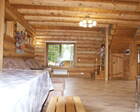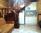 Коттедж №3 «УЮТНЫЙ» с русской баней. Основных мест -2, Дополнительных 6. Двухэтажный коттедж выполнен из кедрового бруса с гостиной студией, кухней и спальней этажом, общей площадью 70 кв.м. 2 этажный коттедж с баней 1 этаж – гостиная студия, кухонный гарнитур, стеклокерамическая панель на 2 конфорки, холодильник, микроволновая печь, столовая посуда, приборы и принадлежности, большой стол, диван - кровать, русская дровяная баня. Душевая. С/узел: гигиенические принадлежности (шампунь, кондиционер, мыло, комплект полотенец) 2 этаж- спальня –студия, Двуспальная кровать, стол, тумбочки, Диван-кровать, 2 кресло- кровати, телевизор.