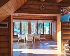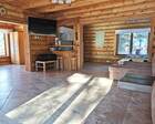 Коттедж №1 «Горный» Двухэтажный коттедж выполнен из оцилиндрованного кедра с гостиной, кухней, спальными комнатами и верандой. Общей площадью 260 кв.м. Кухня оборудована холодильником, микроволновкой, эл. плитой с духовым шкафом, столовыми принадлежностями. 4 номера Основных мест 8, Дополнительных 5.