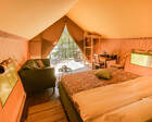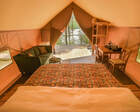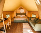 Гостям предлагаются современные тент-хаусы, внутри которых царит уютная, практически домашняя атмосфера. Кроме жилой зоны, в тенте имеется санитарный отсек с комфортным душем. Туалеты расположены неподалеку от жилищ, на отдельном участке. Некоторые тенты оснащены удобной купелью.
