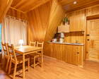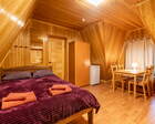 Удобный вариант снять коттедж на Алтае в лесу у реки для большой семьи или небольшой компании. В двух комнатах второго этажа на 40 м.кв. легко разместятся 6 человек: на 4 основных местах и двух дополнительных. В номере: 2 комнаты, две 2х-спальные кровати, диван, телевизор, кухонный уголок с мойкой, сервированный посудой, мультиваркой, электрочайником, микроволновкой, небольшим холодильником, посудный шкаф, обеденный стол с четырьмя стульями. Wi-Fi интернет.