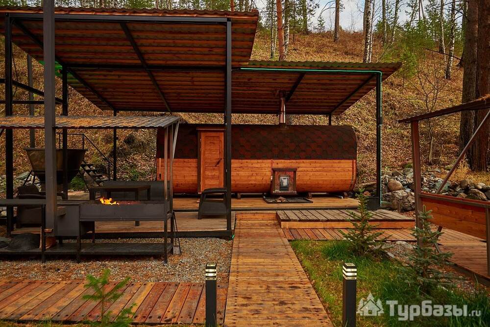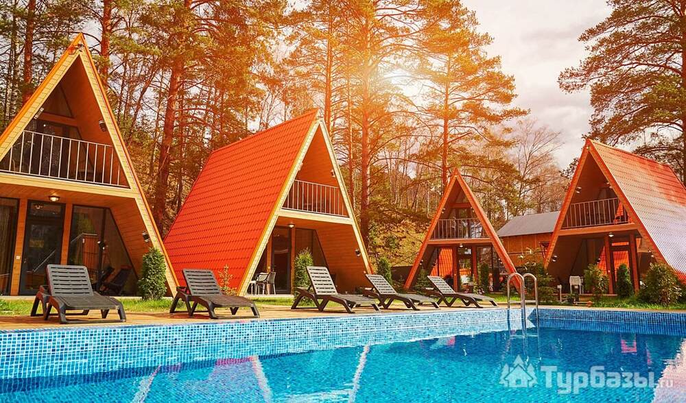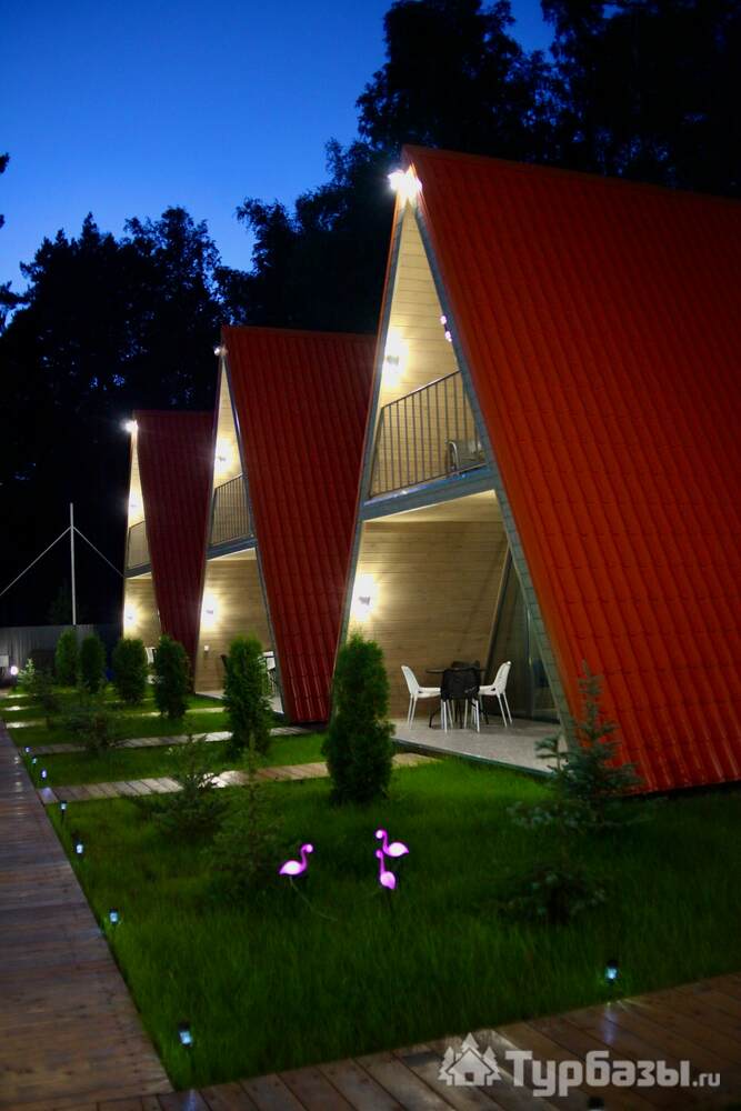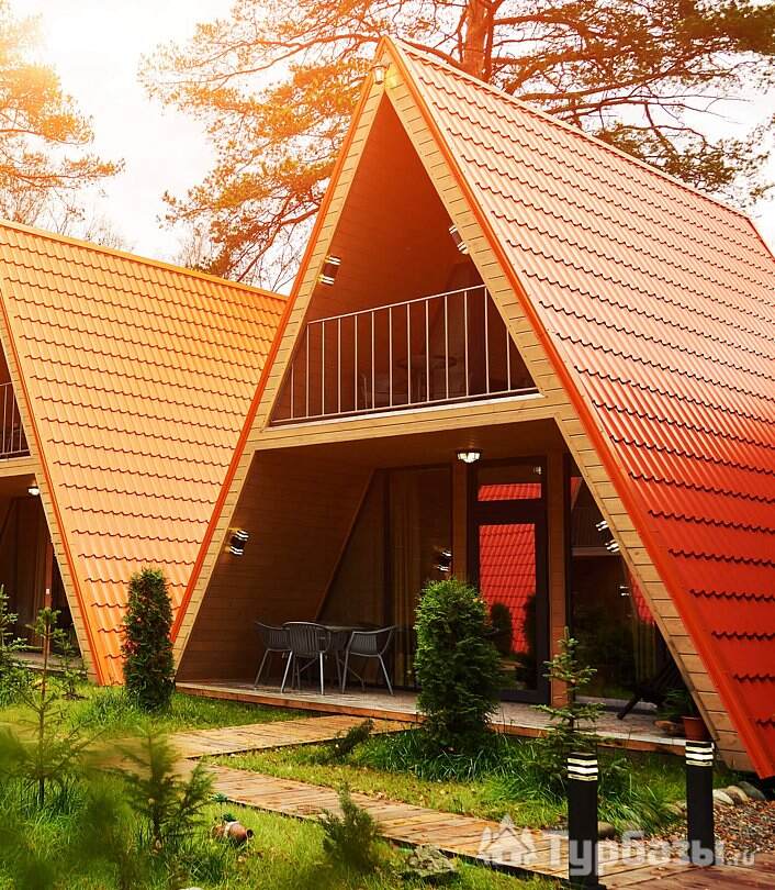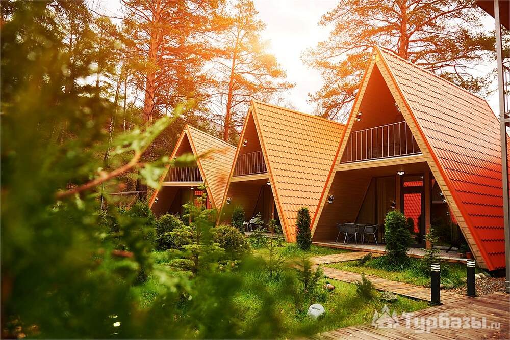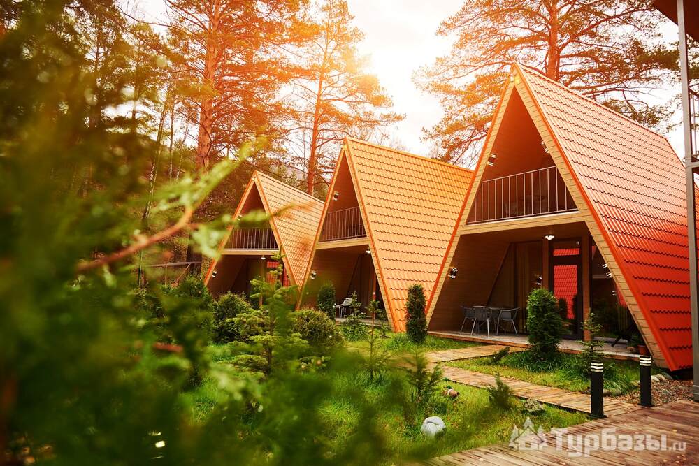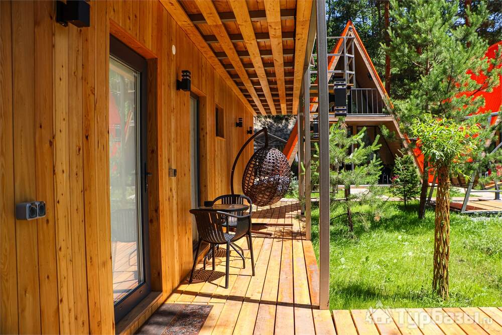 - оборудованные террасы и зоны для отдыха у домиков;