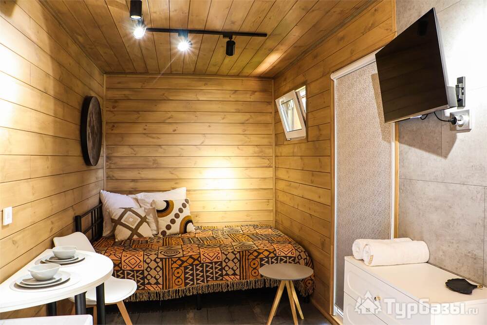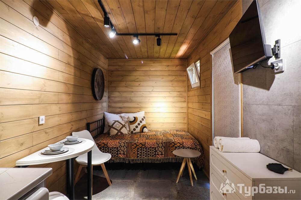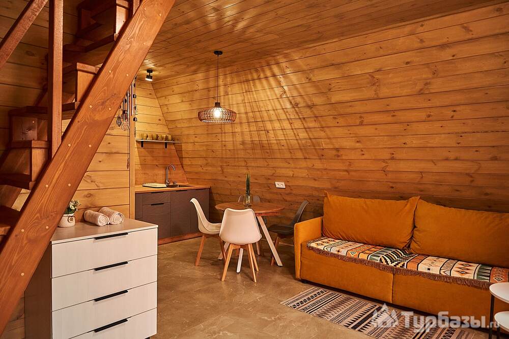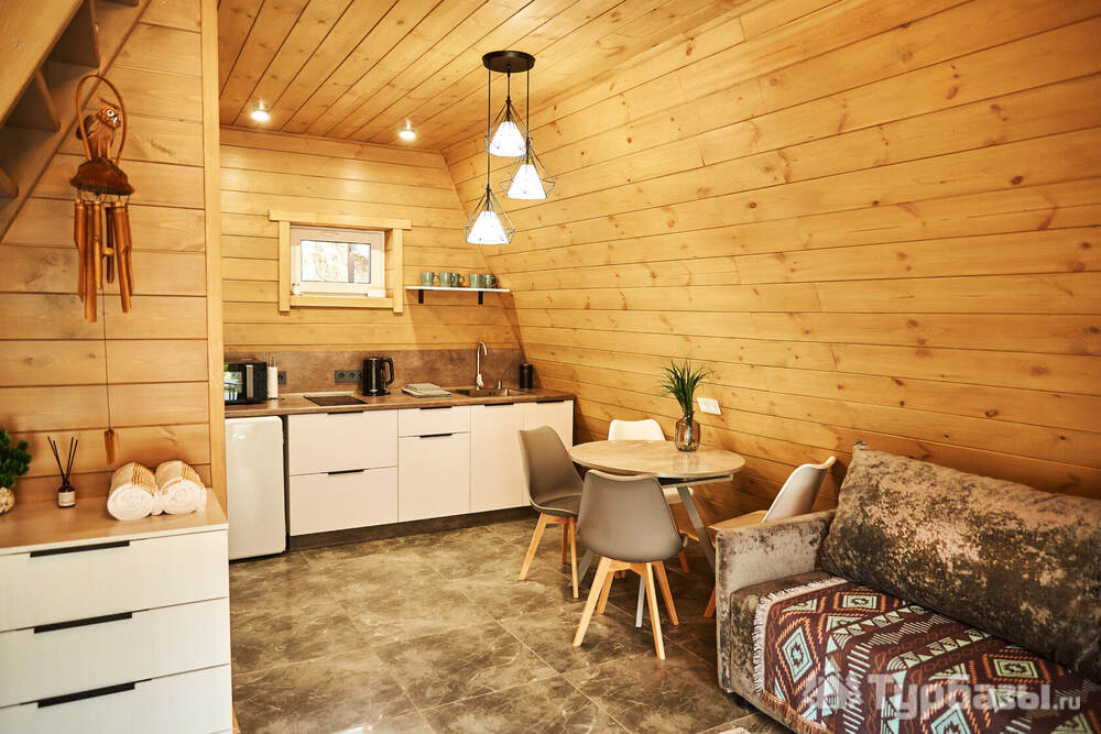 На площадке представлены панорамные модульные домики и несколько типов номеров/шале. Во многих домиках встречаются большие окна с видом на горы/бассейн, меблированная терраса, кухонная зона в домиках, ванная комната и тёплые полы — то есть формат ближе к комфортному загородному размещению, а не к суровому кемпингу.