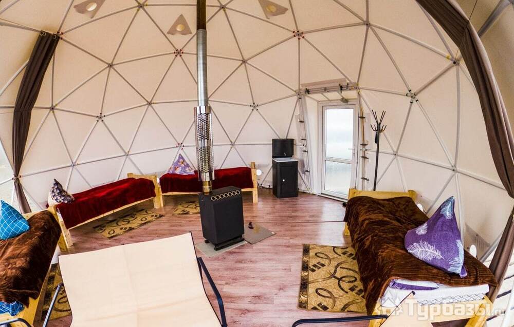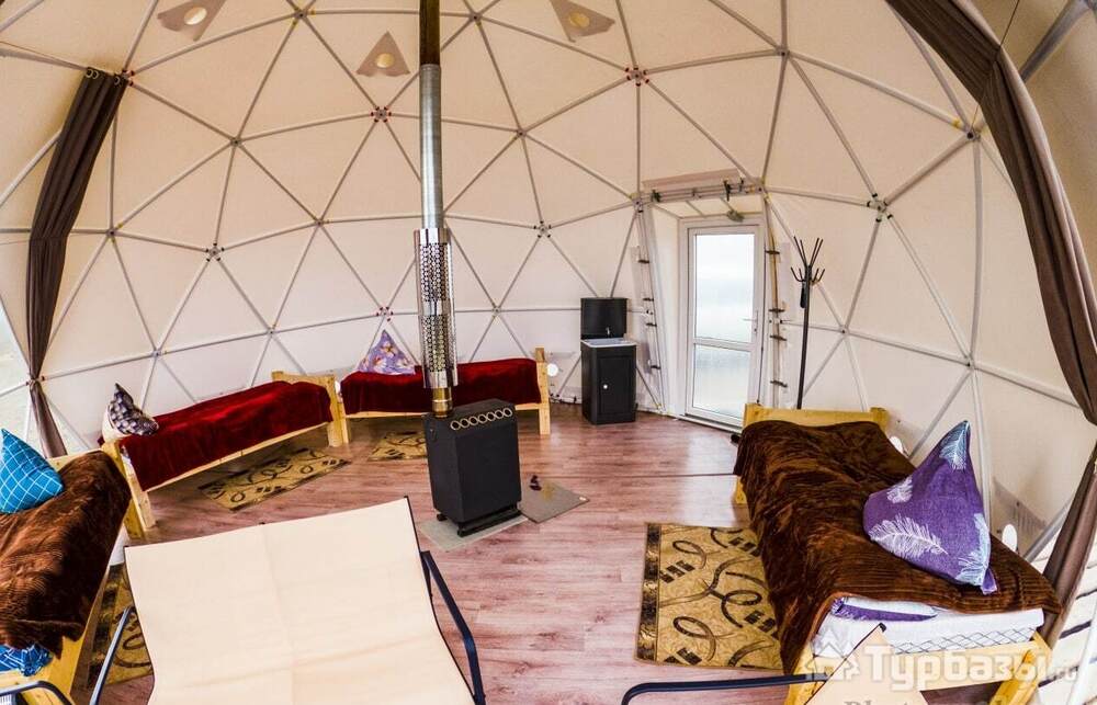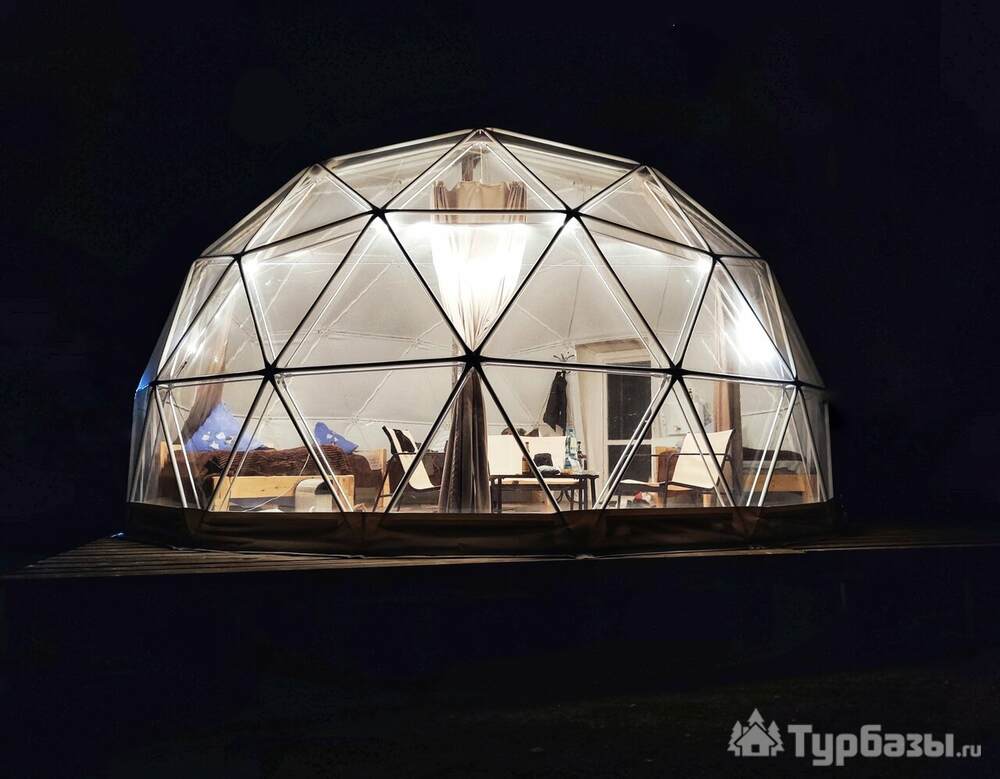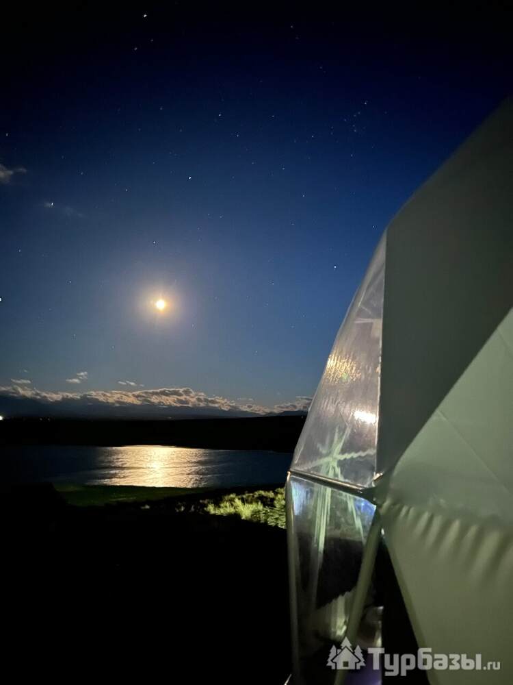 На базе есть уютные купольные геодома и несколько благоустроенных деревянных домиков — варианты для пар и семей. На территории предусмотрены общие благоустроенные санузлы и души, есть точки с питанием, Wi-Fi и парковка; возможен трансфер по запросу. Такой формат отдыха оставляет ощущение близости к природе, но не заставляет жертвовать комфортом.