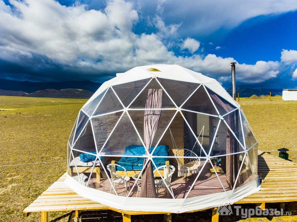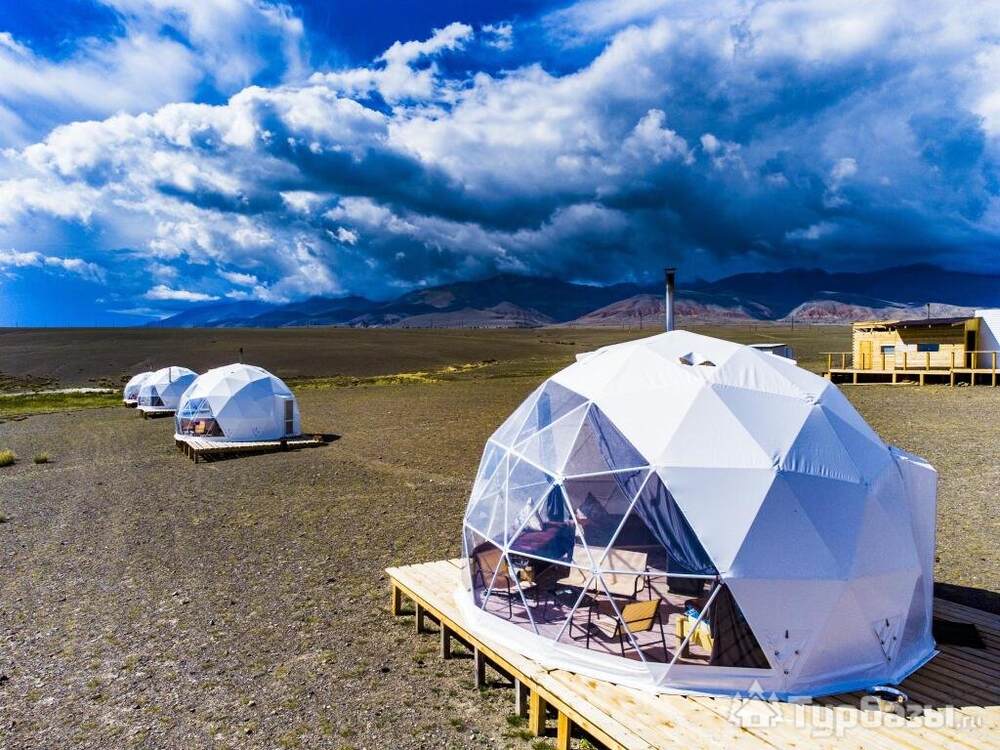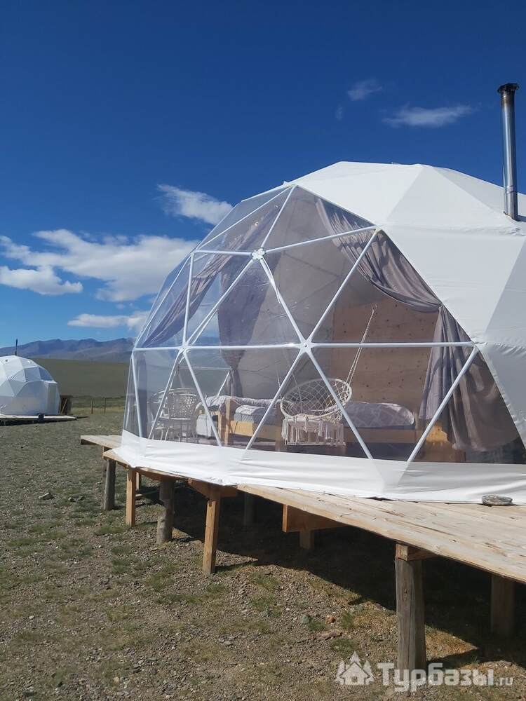 Свой Алтай — это купольный глэмпинг, где минимализм геокуполов встречается с бескрайними ландшафтами Южно-Чуйского хребта и степной тишиной. Здесь можно проснуться в куполе с панорамой на горы, выйти на террасу и почувствовать, что вы наедине с Алтаем — но с удобствами, которые делают отдых лёгким и приятным.