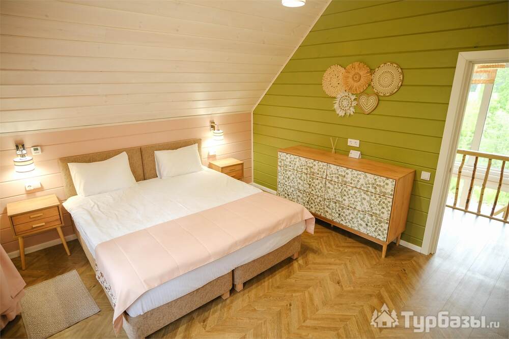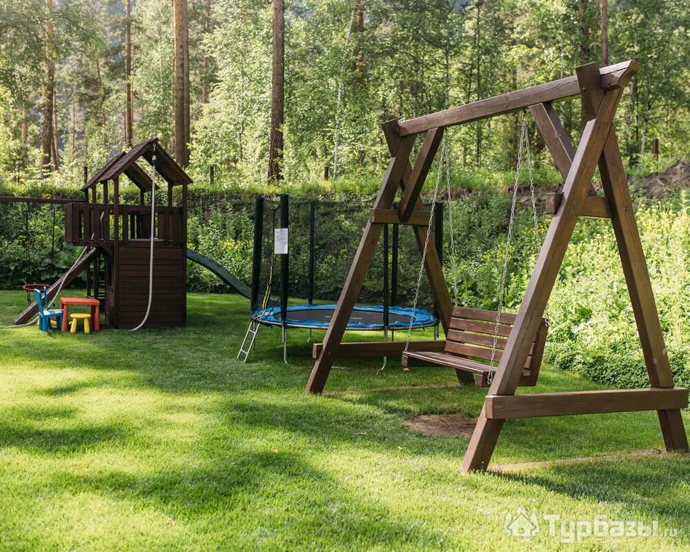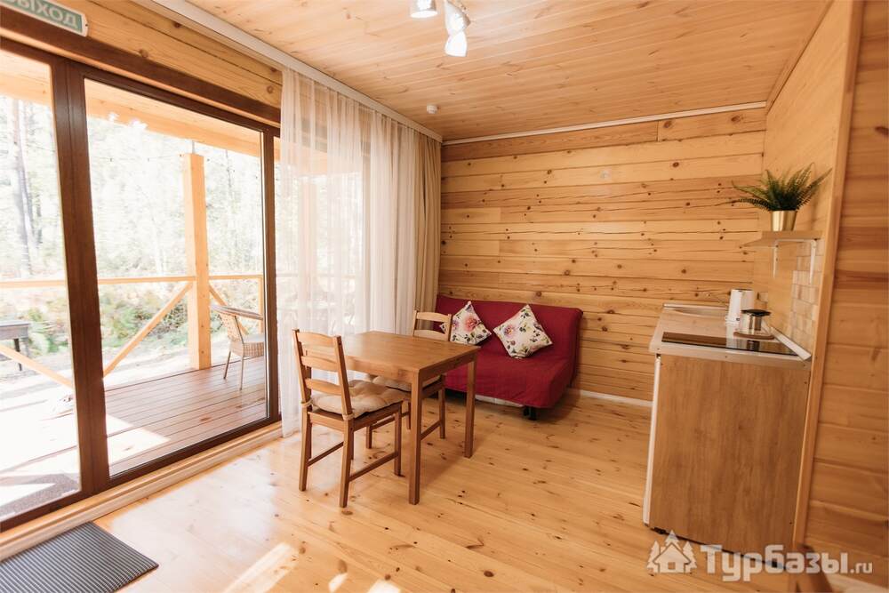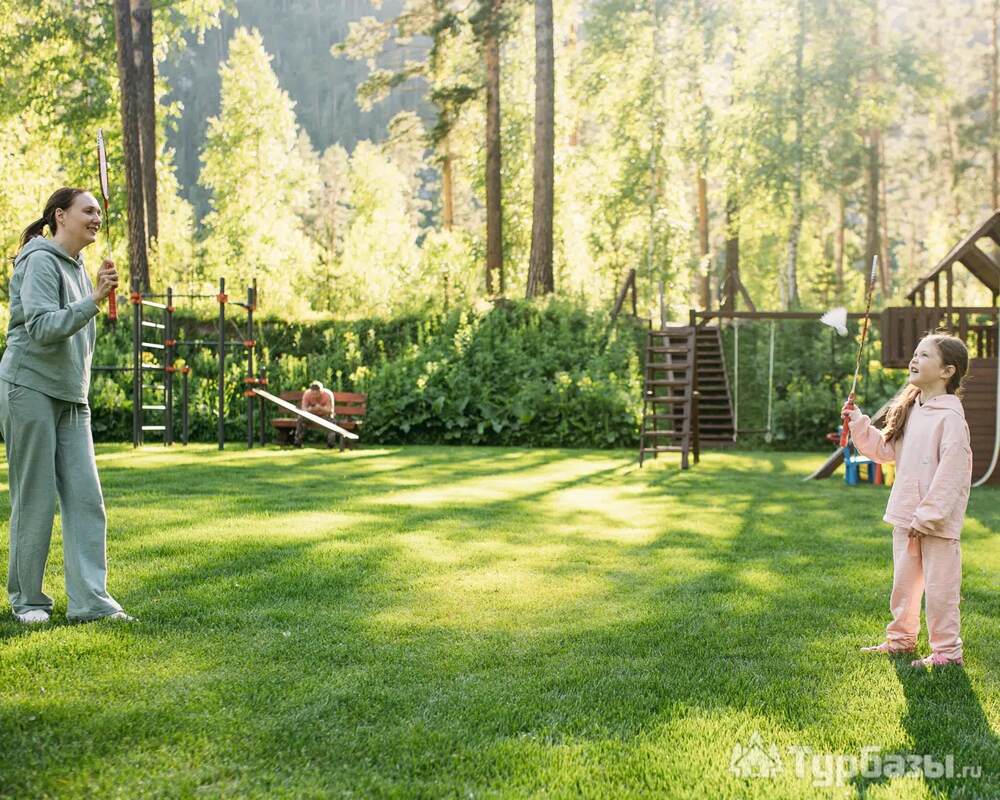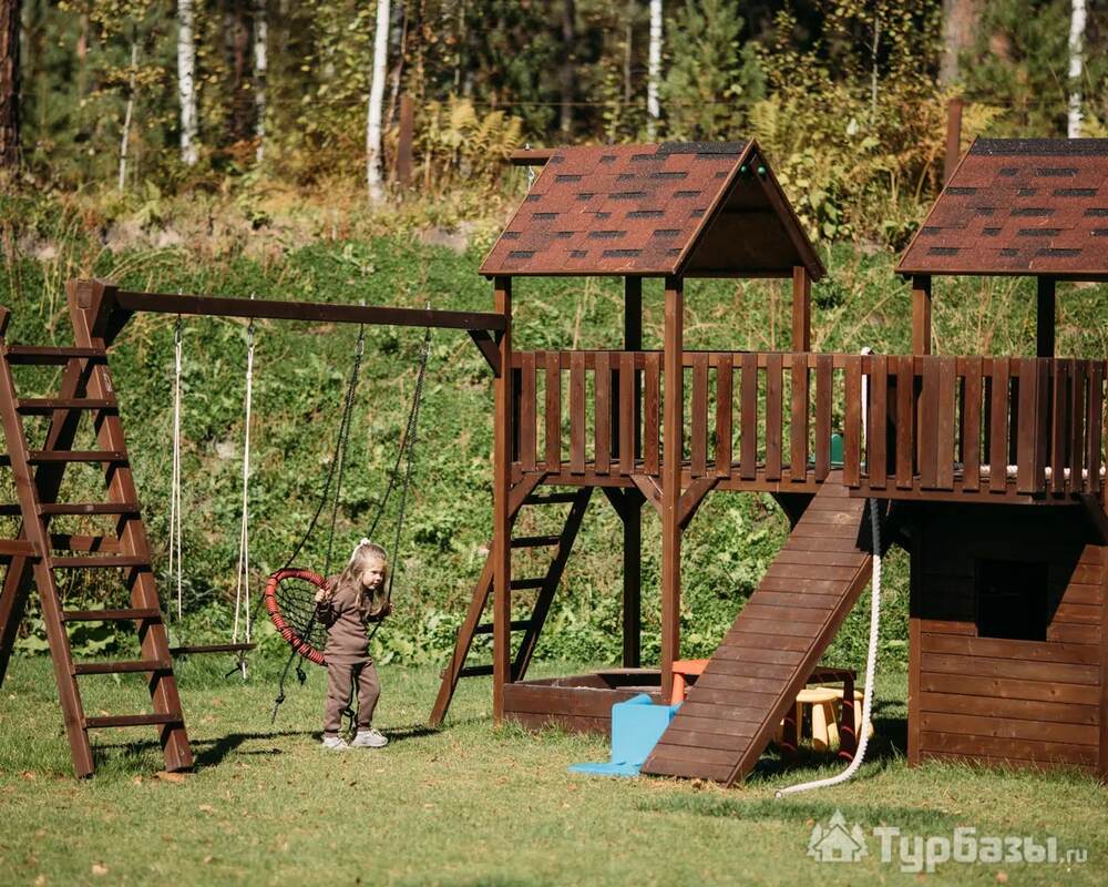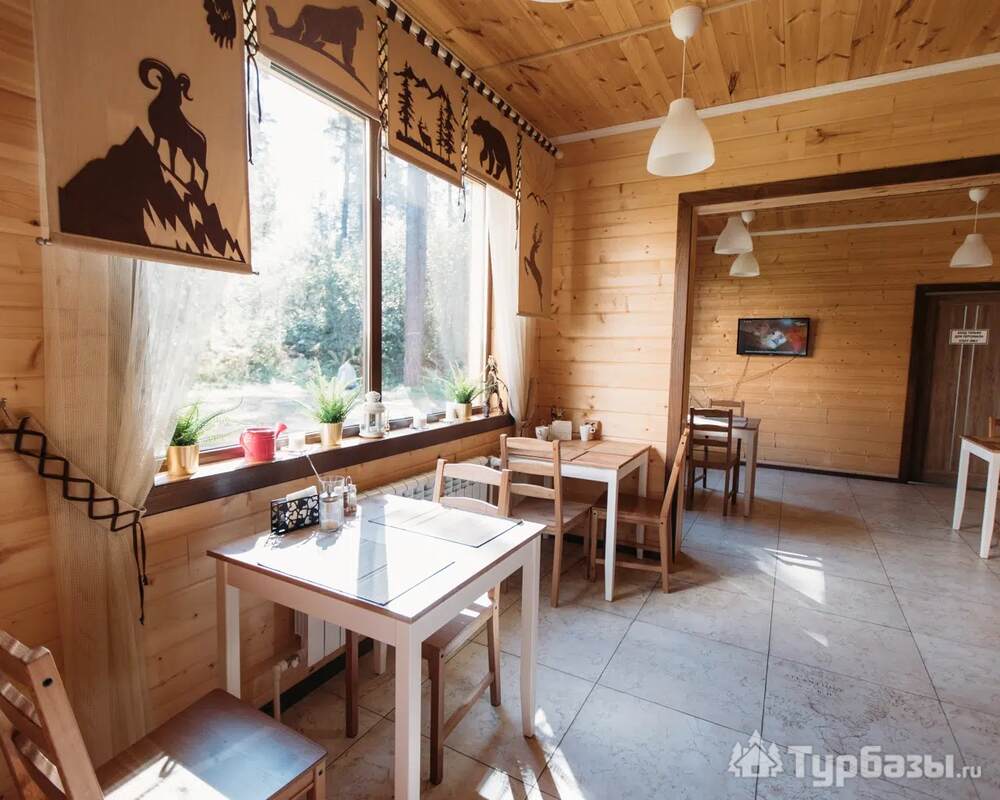 На территории работает кафе (режим работы 9:00–21:00), кедровая баня и чан на дровах; есть мангальные зоны, беседки, детская и спортивная площадки, настольные игры и летний подогреваемый бассейн. Размещение представлено домиками, аилами, шале, барнхаусами и корпусом со стандартными номерами.