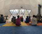 Домики рассчитаны на одного, двух и трех человек. Общая вместительность купольной деревни — 25 гостей. Зал площадью 80 кв. метров с панорамным остеклением купола позволяет проводить коллективные ретриты, заниматься йогой и всевозможными оздоровительными практиками.