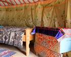 В летнее время путешественники проживают в традиционных алтайских юртах, а зимой в деревянном аиле или степном приюте. Летом в кемпинге работает открытая кухня. Приготовление блюд осуществляется по предварительному заказу. Так же имеется общая кухня, на которой туристы могут самостоятельно готовить еду. Есть огромная круглосуточная столовая в виде юрты.