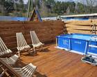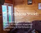 • Семейный дом с размещением до 10 человек. Это 2-хэтажный благоустроенный дом: - на 1-ом этаже душевая, раковина и туалет; угловой диван, шкаф-пенал для одежды, телевизор, - на 2-ом этаже двуспальная кровать, диван, дополнительные спальные места, шкаф для одежды, телевизор. Около дома имеется летняя беседка-веранда с оборудованной кухонной зоной, укомплектованной холодильником, чайником, посудой, мангалом.