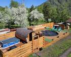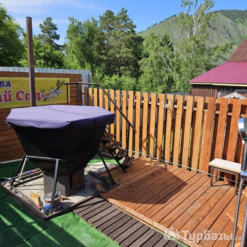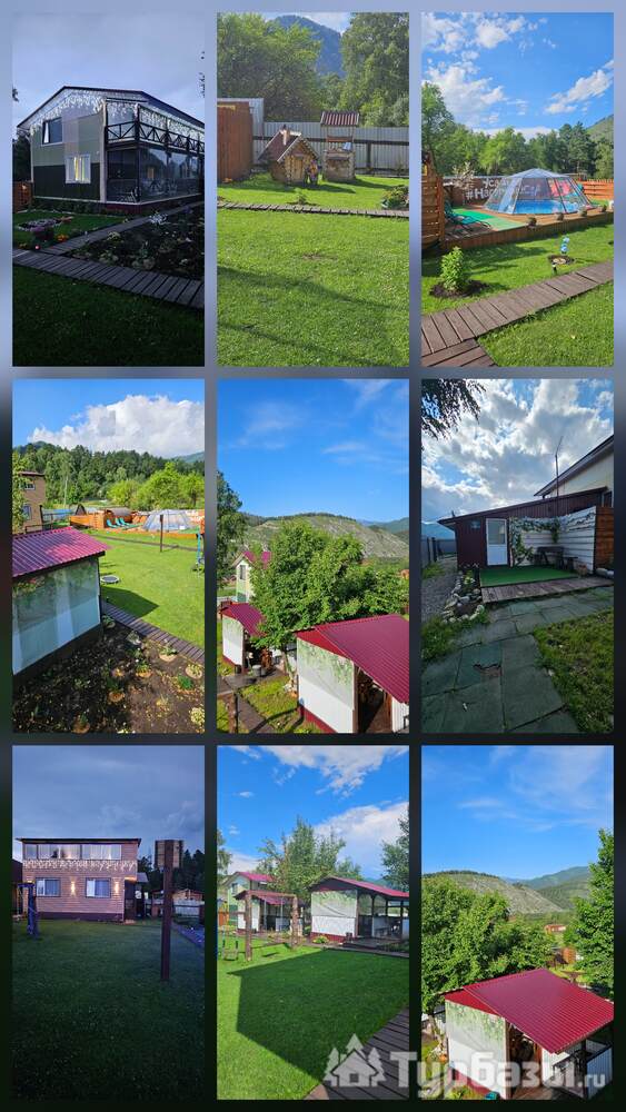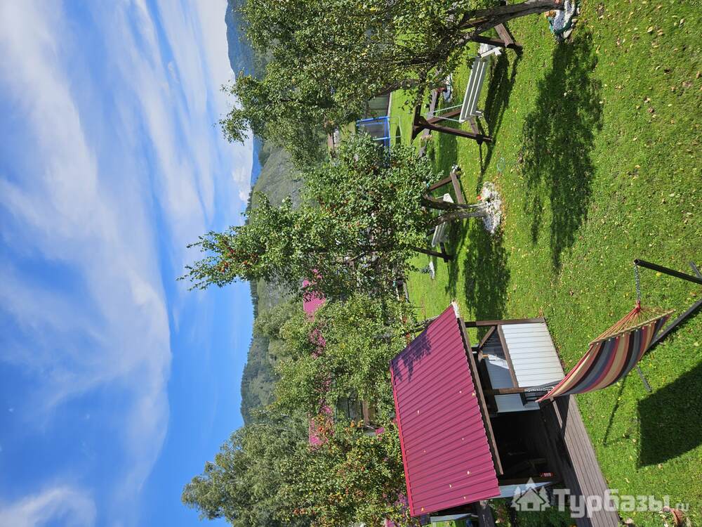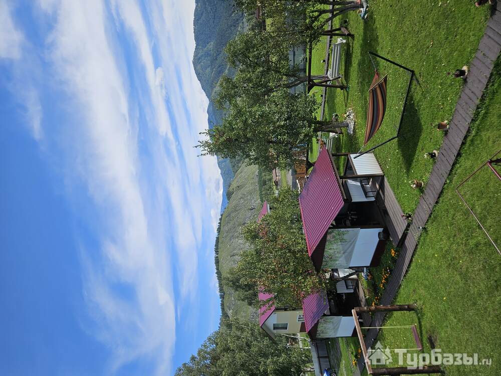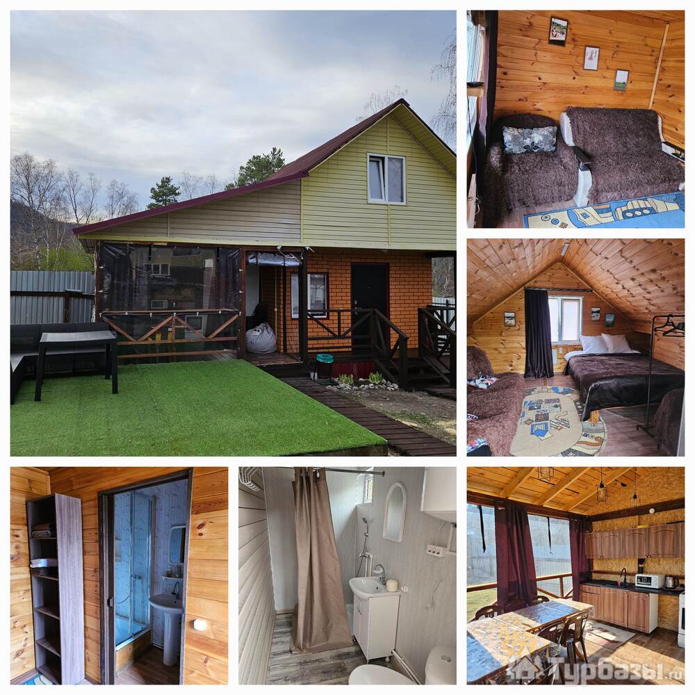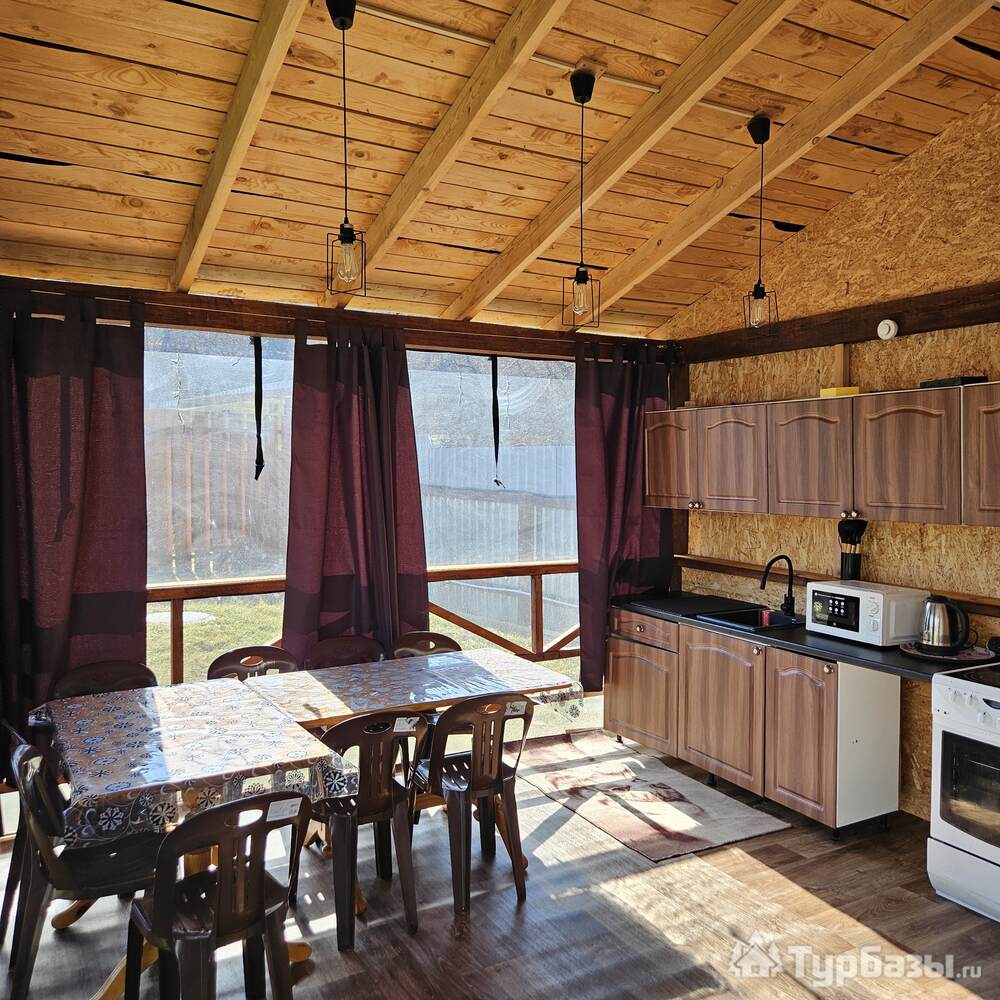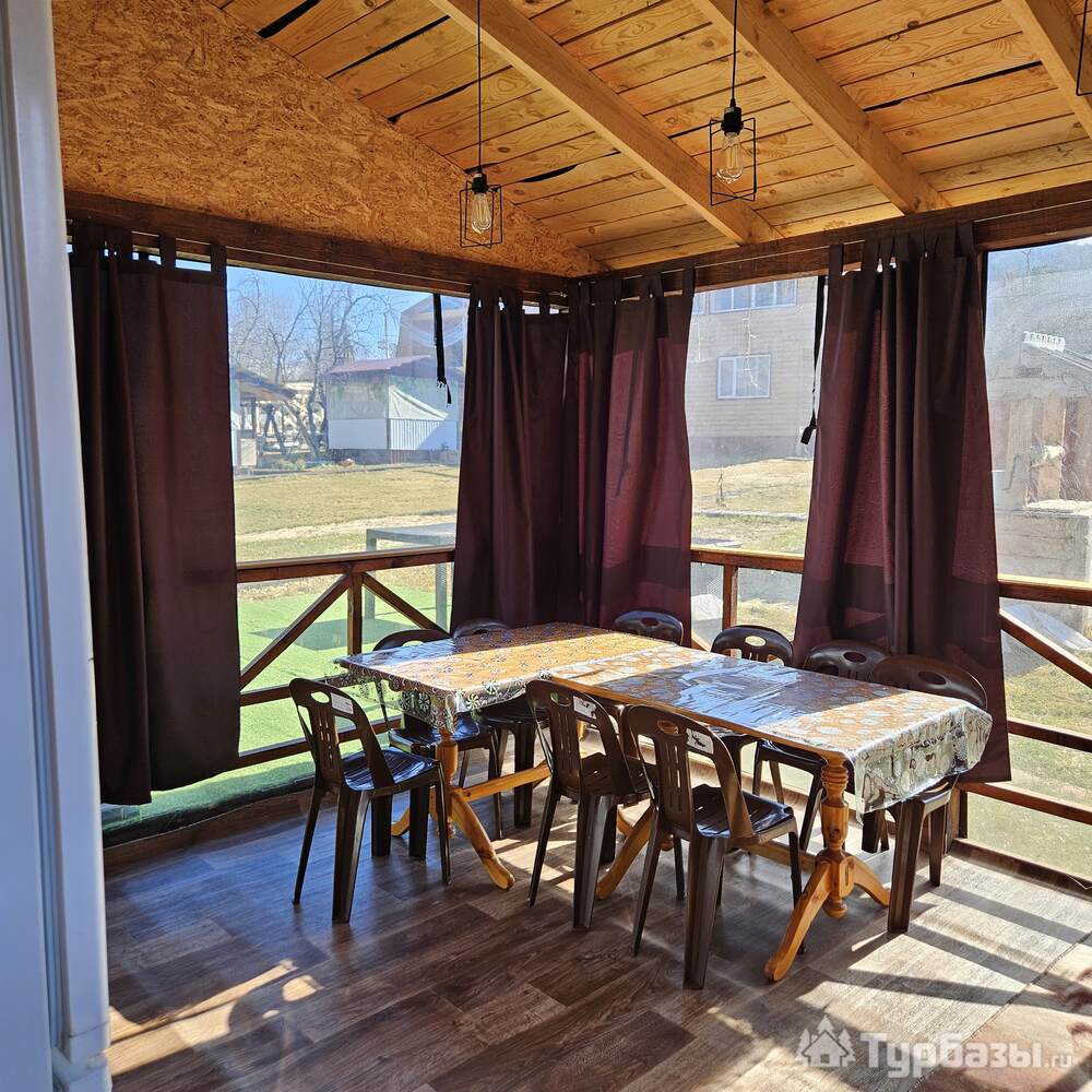 • Летний дом с террасой и живописным видом на горы включает в себя 6 номеров: - два номера с двуспальными кроватями, шкафами для одежды, санузлами, холодильниками, чайниками и с возможным одним дополнительным спальным местом; - четыре номера с двуспальными кроватями, шкафами для одежды, чайниками. Около дома мангальная зона.