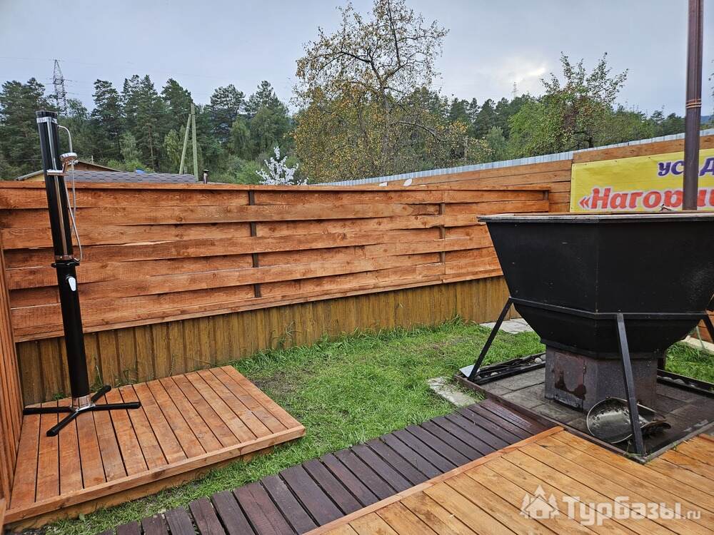 На территории усадьбы «Нагорный Сад» имеется: - летний душ с горячей водой, - благоустроенный туалет, - кухня для самостоятельного приготовления пищи, - мангалы около беседок, - доступ в интернет через Wi-Fi, - бассейн, - баня-бочка, - чан для парения, - детская игровая зона с батутом, - бесплатная автомобильная парковка. Дополнительные услуги: экскурсионные программы, сплавы, прокат лошадей, прокат квадрациклов. Противоклещевая обработка территории усадьбы «Нагорный Сад» проводится.