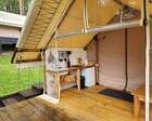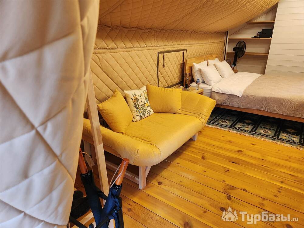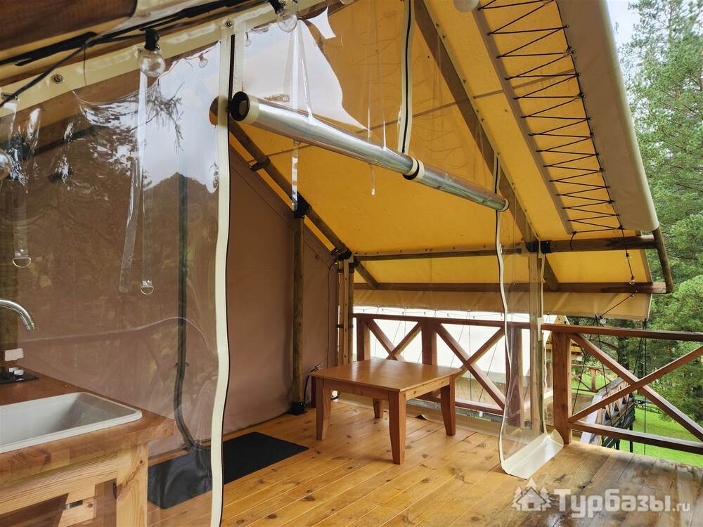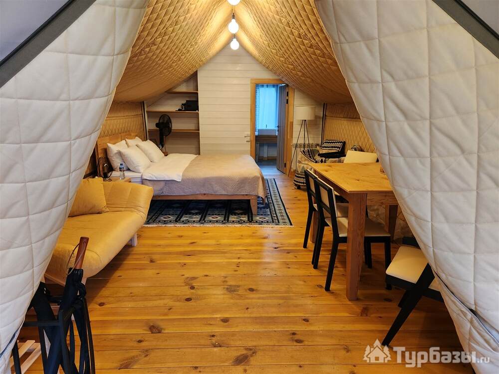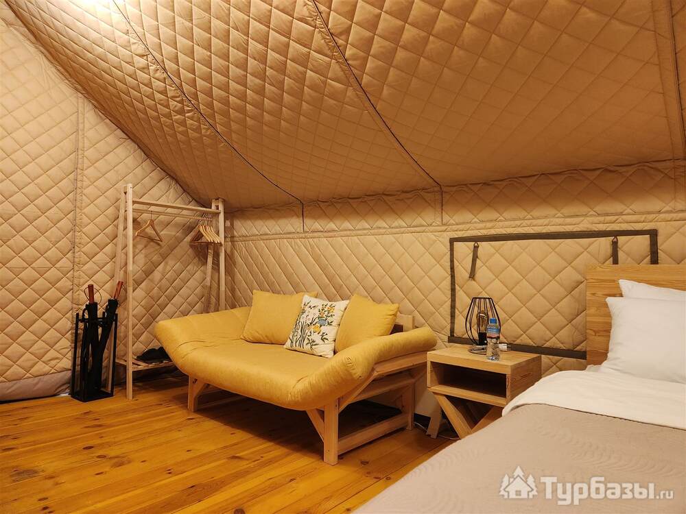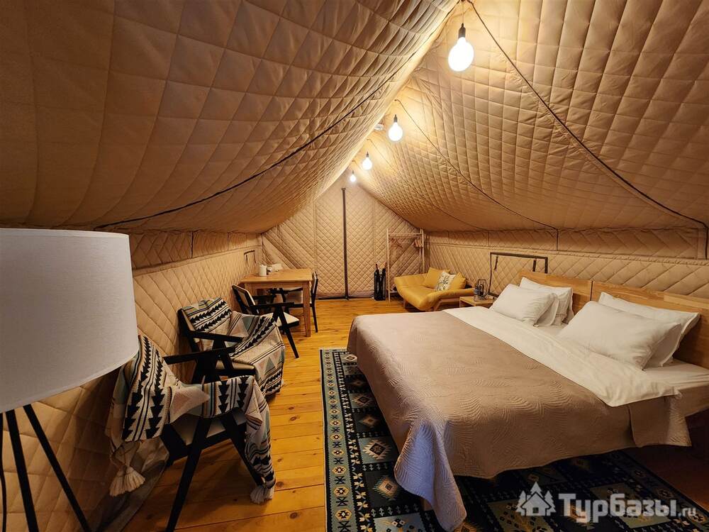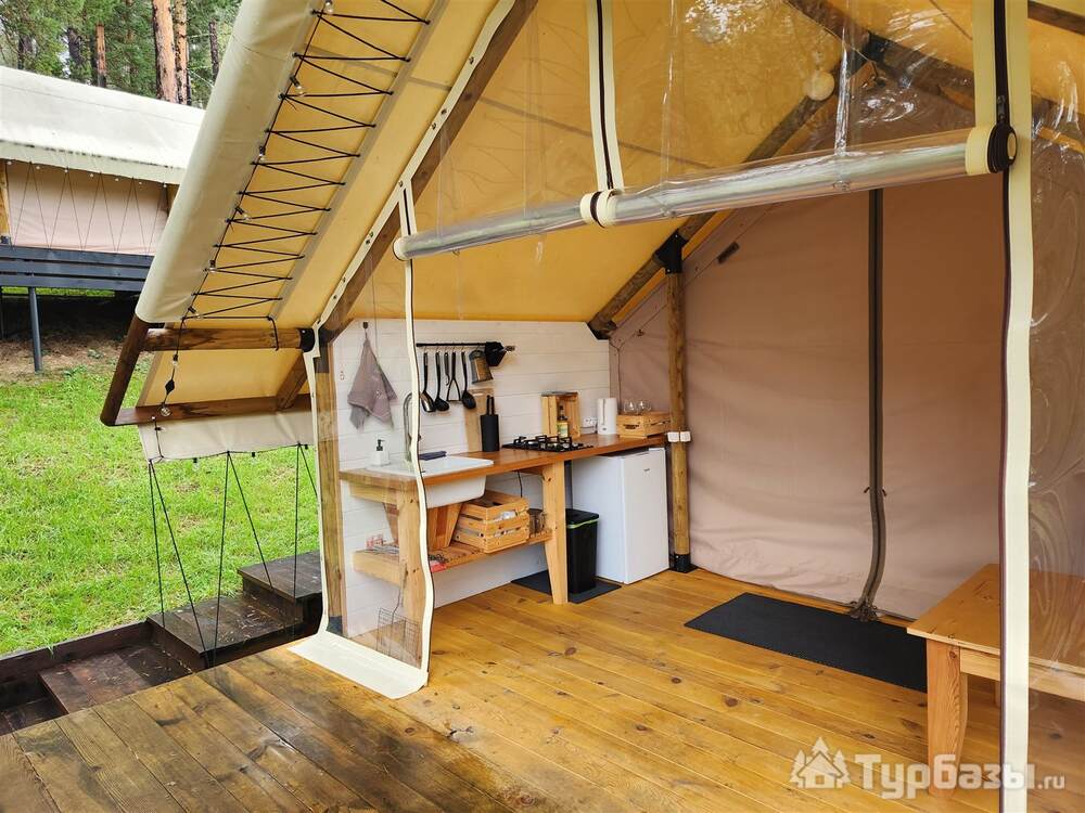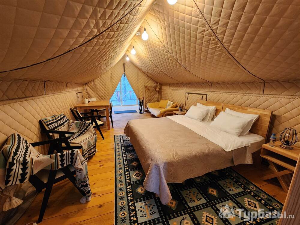 На базе есть тёплые сафари-тенты с кухонной зоной и полноценные апартаменты/семейные номера — формат, который позволяет и готовить самостоятельно, и заказывать завтрак. В номерах встречаются привычные приятные мелочи: холодильник, чайник, телевизор, тёплый пол; на территории — парковка, Wi-Fi и зоны для барбекю. Для полной релаксации глэмпинг предлагает банные услуги.