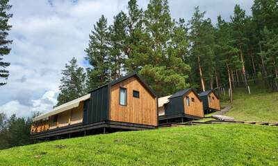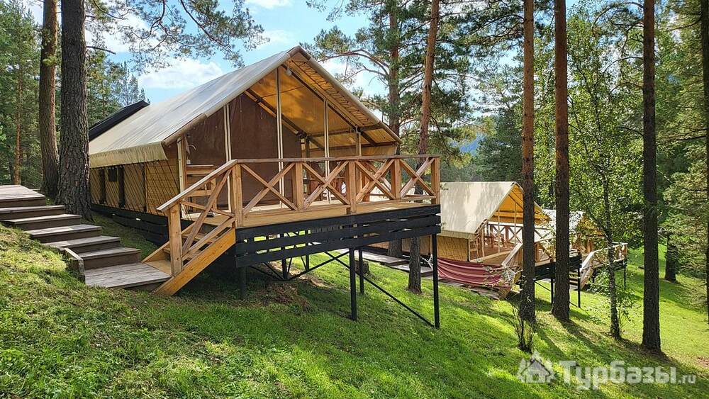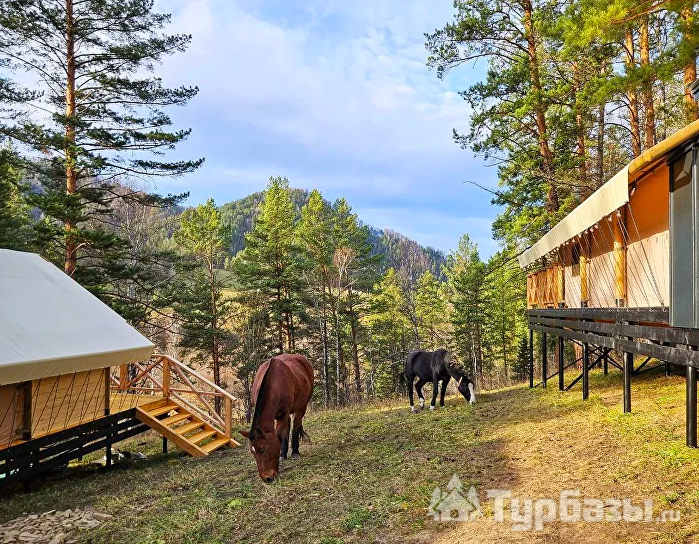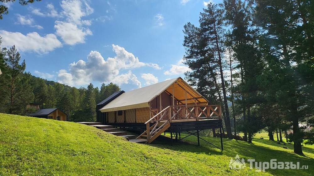 Вдохни Алтай — современный глэмпинг, где аккуратно оформленные сафари-тенты и апартаменты стоят в уединённой долине среди сосен, а главная его мелодия — журчание горной реки и пение птиц. Это место про простой дизайн, удобство и настоящую близость к природе.