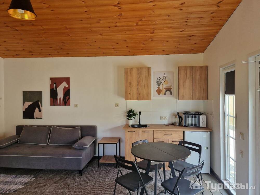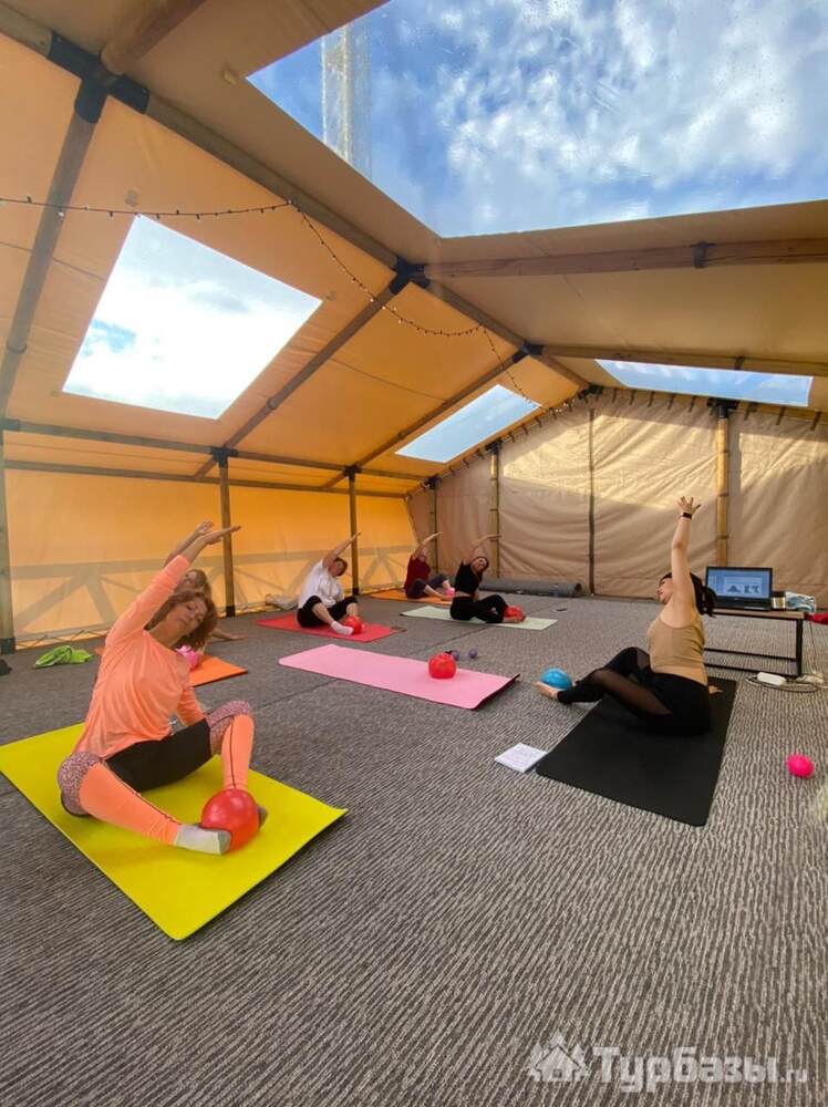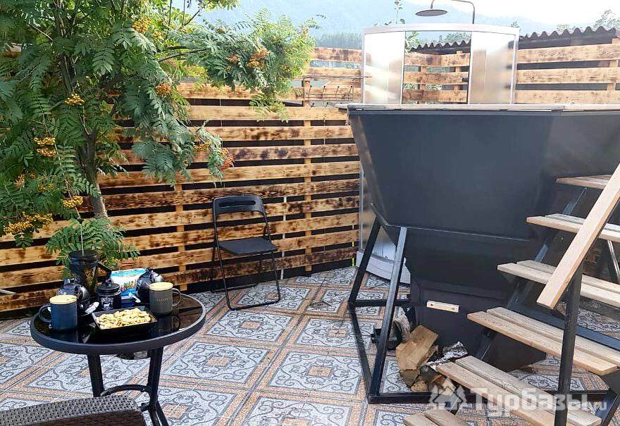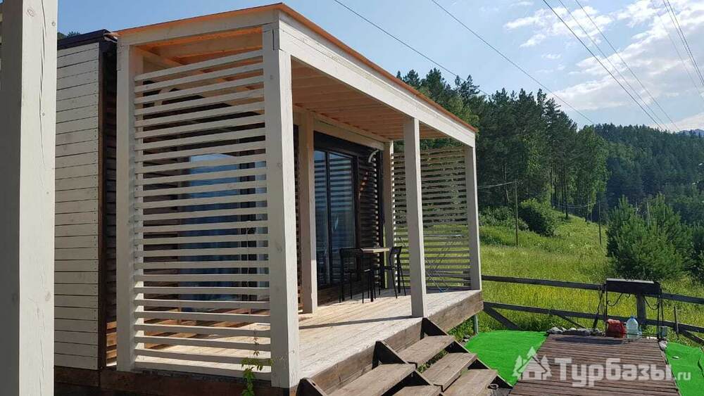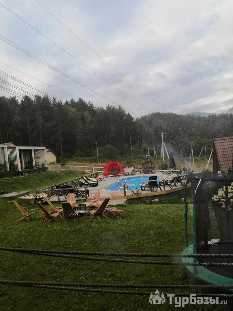 На территории — ряд небольших домиков (включая домики у бассейна и барн-хаусы с верандами), ухоженный сад и общие зоны для отдыха. Среди платных услуг — традиционная русская баня на дровах и сибирский чан; для гостей предусмотрены места для барбекю и площадки для мероприятий.