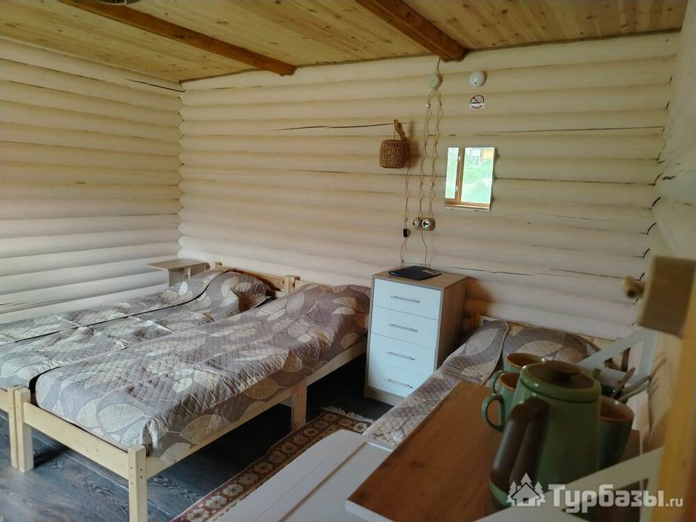 На базе представлены благоустроенные домики разного формата — среди них выделяют шале «Шанти-хаус» с большой обзорной верандой, кухней-гостиной и двумя спальнями; у домов есть мангальные зоны и организованные места для костра у берега. По факту это не «дикий» кемпинг, а спокойная эко-база с базовой инфраструктурой для комфортного проживания на природе.