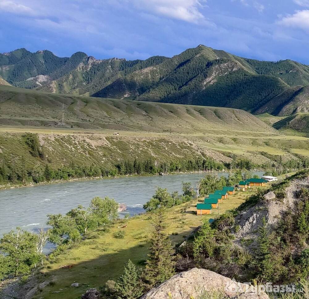 База Дзен Алтай расположена на береговой линии Катуни с большой территорией для прогулок — у объекта заявлено около 600 метров собственной береговой полосы, что даёт много приватных точек у воды и хорошие виды на горы. Территория отдалена от оживлённых дорог и соседей — это одна из ключевых особенностей локации.