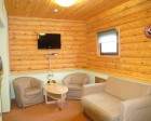 Для проживания приезжающим предлагаются номера «стандарт» и «комфорт» в гостинице и дома коттеджного типа. Массив сосны – основной материал, который использовался при строительстве зданий. На базе можно арендовать уютную беседку с мангальной площадкой.
