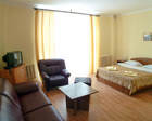 16 номеров от класса эконом до люкс, оснащены удобной и комфортной мебелью, отдельными санузлами с душевыми кабинками, спутниковым телевидением и интернетом. Также в наличие минибары и телефон. В номерах класса “люкс” установлены камины и биде. Двухразовое питание включено в стоимость проживания. вкусные и неповторимые блюда готовятся только из свежих и качественных продуктов. Здесь Вам могут предложить блюда как мясные, так и приготовленные из рыбы и морепродуктов. На завтрак предлагается шведский стол, а на ужин как правило будет предложено три блюда. Меню самое обширное, и состоит из блюд национальной кухни, европейской и русской.