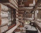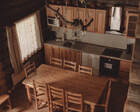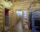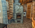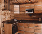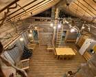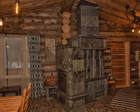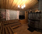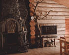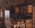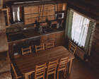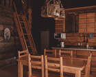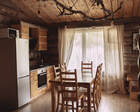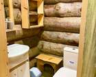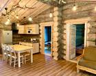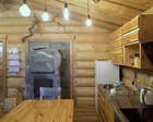 На мансардном этаже пять односпальных кроватей. Кухня-гостиная с камином из шунгита со всем необходимым для приготовления пищи.
