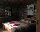 Коттедж разделен на три части с отдельными входами, в каждой части: две спальни по 14 м2, (№1 — две односпальные кровати, №2 — двуспальная кровать).