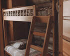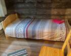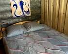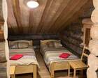 на мансардном этаже отдельная спальня с двуспальной кроватью и три односпальных кровати.