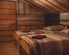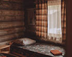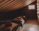 Мансардный этаж на 4 спальных места, большие панорамные окна и выход на просторный балкон с видом на Онежское озеро.