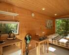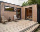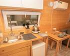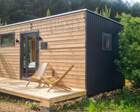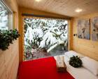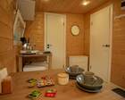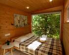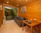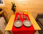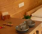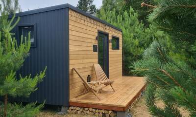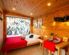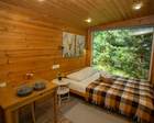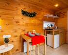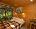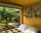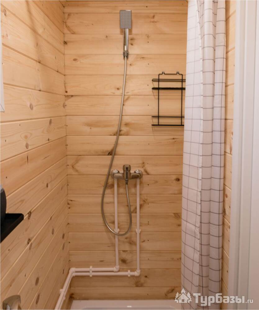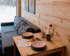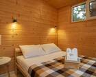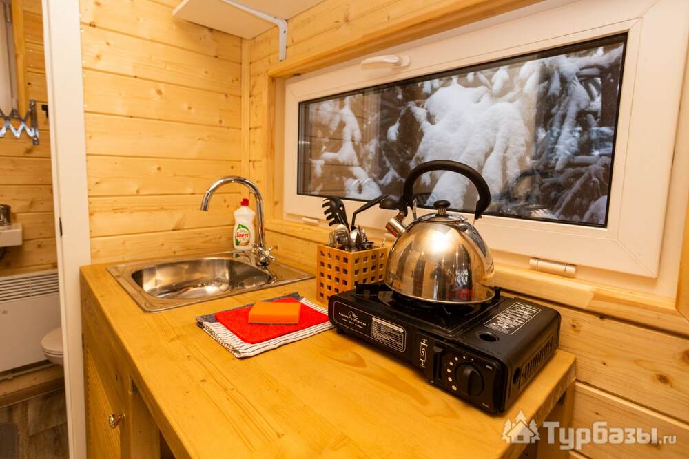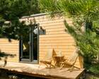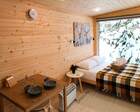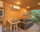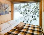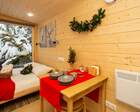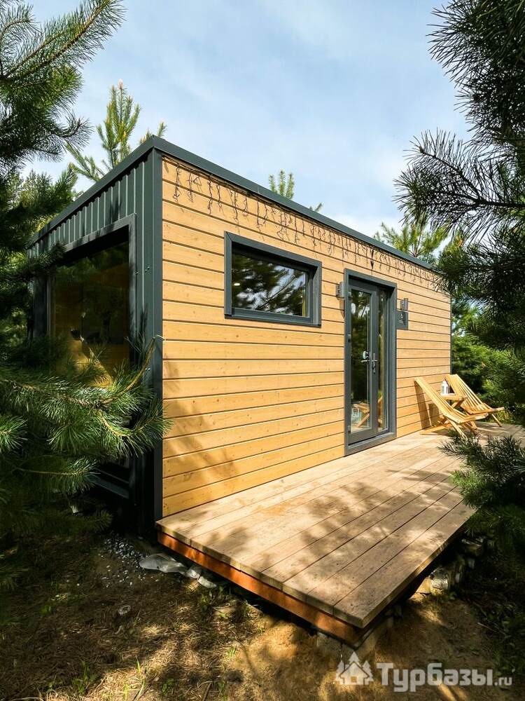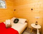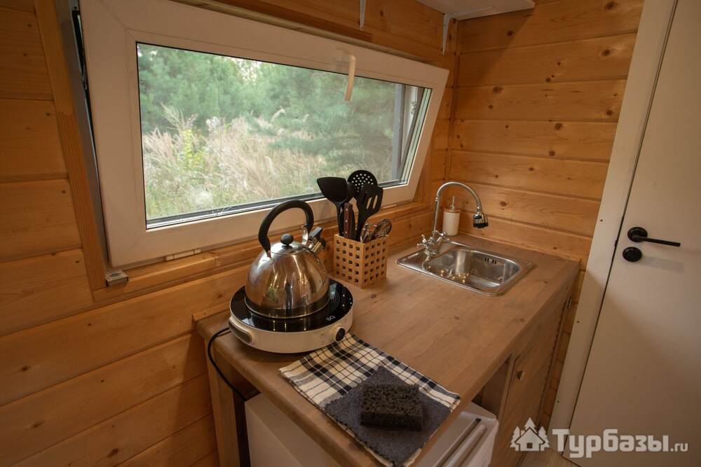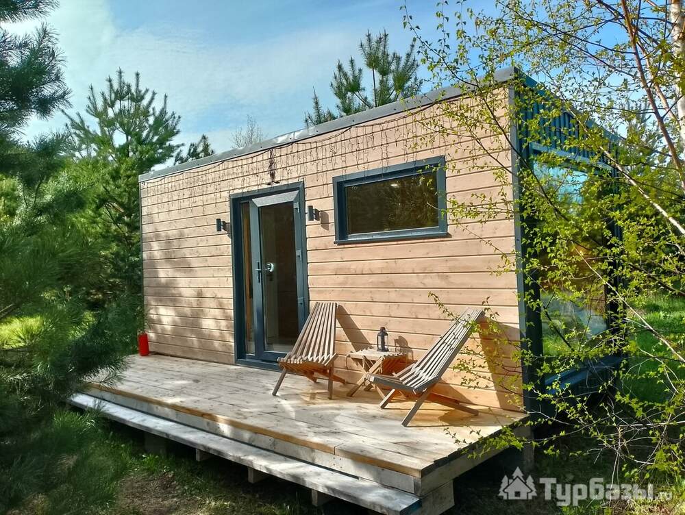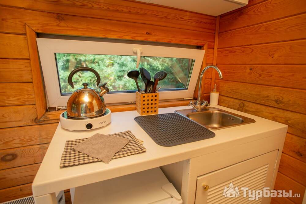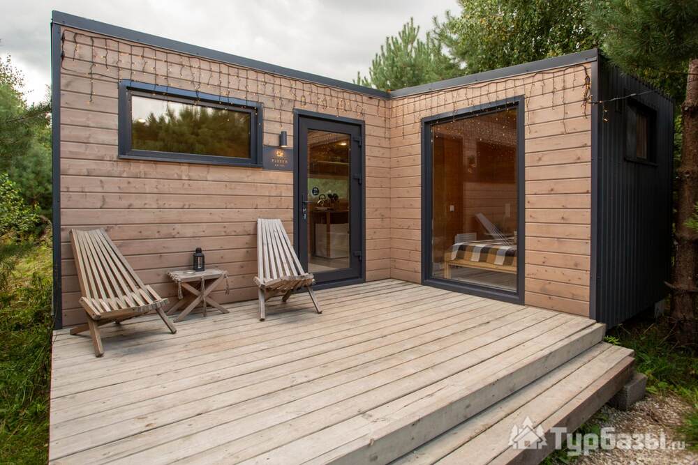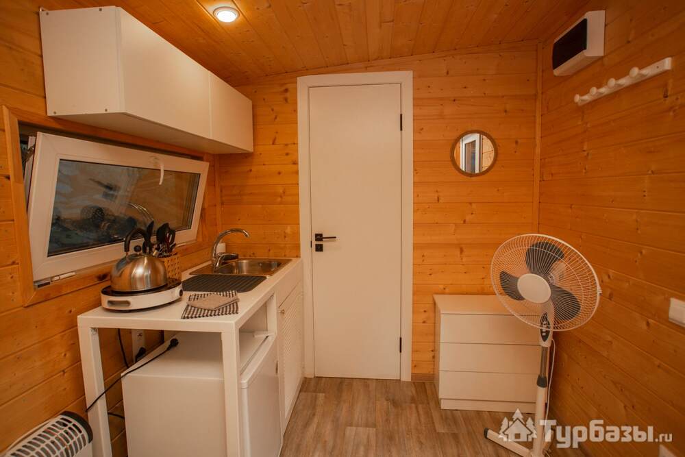 На базе — серия компактных «скандинавских» домиков (одно- и двухмодульные форматы): каждое жильё имеет отделку из дерева, с кухонным уголком, двуспальной кроватью и панорамным окном, через которое видна лесная полянка. Интерьеры тёплые и минималистичные — хороши для пар и небольших семей.