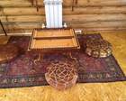 Выстроена русская баня в два этажа, которая топится дровами. Есть комната для отдыха после принятия легкого пара. Площадь ее 36 кв. м. В комнате отдыха можно смотреть телевизор, поиграть в нарды и выкурить кальян. Рядом с баней просторная летняя беседка с оборудованием для любителей шашлыка.