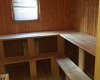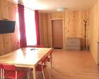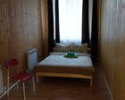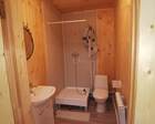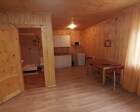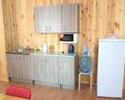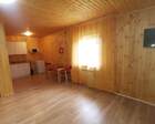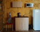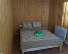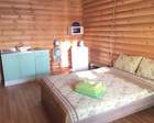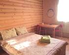 В деревянном срубе 4 номера, 2 на первом этаже и 2 на втором. Площадь каждого номера: 15 м2. В номере: двуспальная кровать, стол, стулья, прикроватные тумбочки, вешалка, зеркало, набор полотенец, набор постельного белья, телевизор, посуда, микроволновая печь, электрочайник, холодильник, вода, мангальная зона возле дома. Удобства (душевая кабина, туалет, раковина) на этаже общие на 2 номера. Цена в субботу 2000р