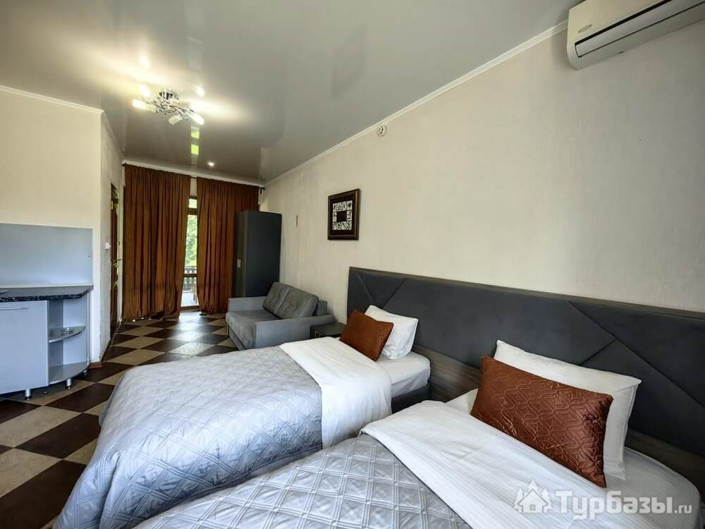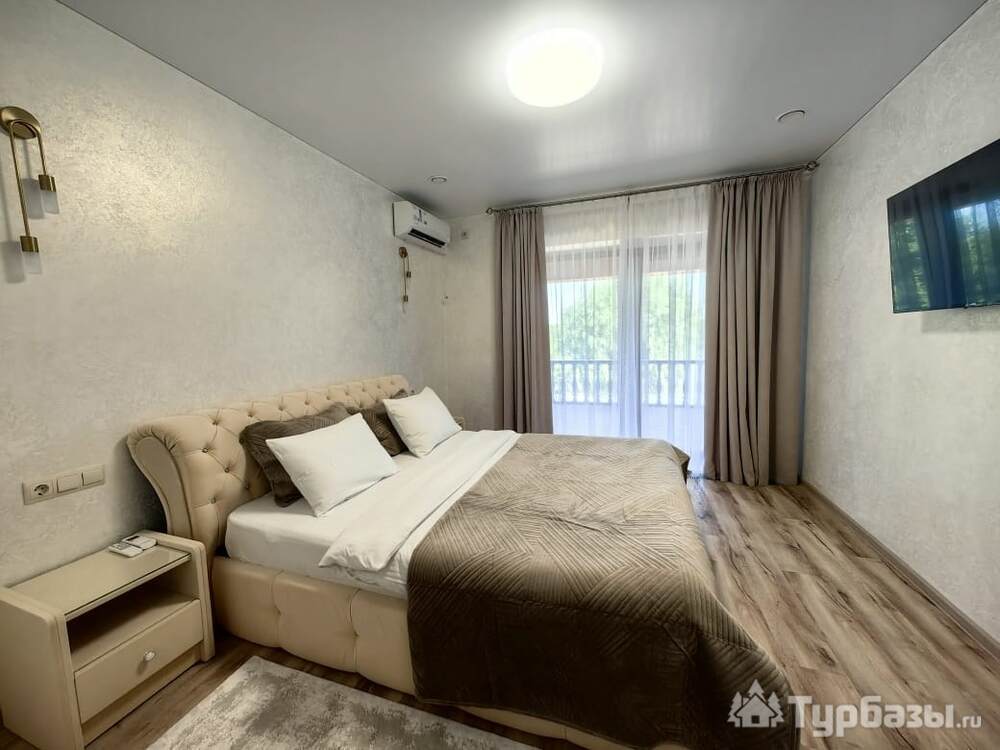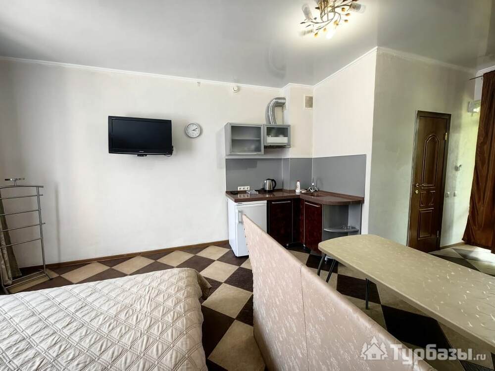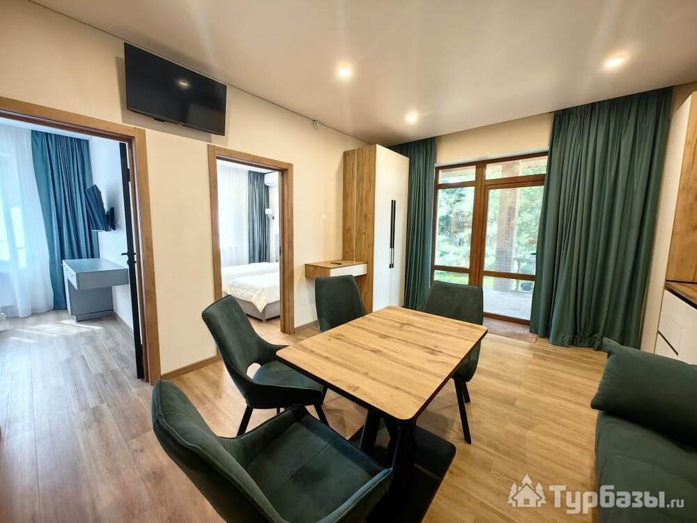 «Алмаз Аква Плаза» сочетает комфорт городской гостиницы и функциональность загородной базы: в распоряжении гостей — однокомнатные и трёхкомнатные номера с полным набором удобств, а также отдельные домики для компаний и семей. Во всех вариантах предусмотрены сплит-системы, телевизоры, санузлы и удобная мебель; из некоторых номеров открываются виды на зелёные насаждения и водную гладь. Просторные террасы и закрытые гостиные дополняют ощущение уюта — форматы размещения подойдут как для короткой ночёвки, так и для продолжительных выходных с семьёй.