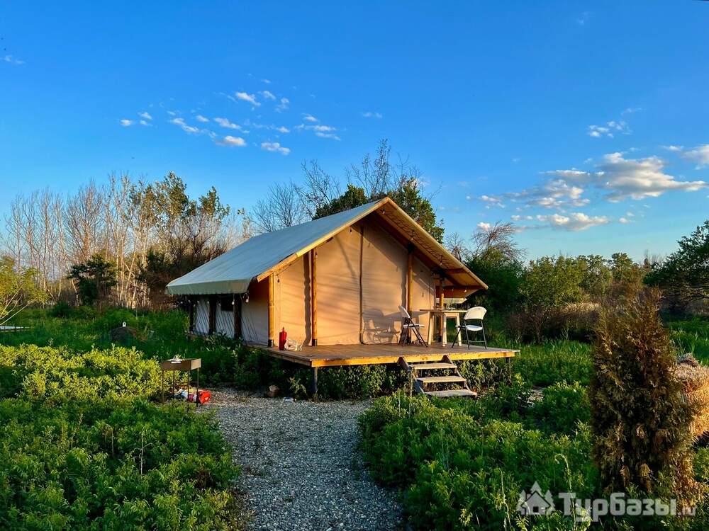 На базе небольшое количество номеров — всего около 9 единиц — оформленных в стиле глэмпинга: комфортные домики/шатры с базовой гостиничной оснасткой. Варианты размещения ориентированы на пары, семьи и небольшие компании; большинство домиков имеют террасы и собственные мангальные зоны у выхода.