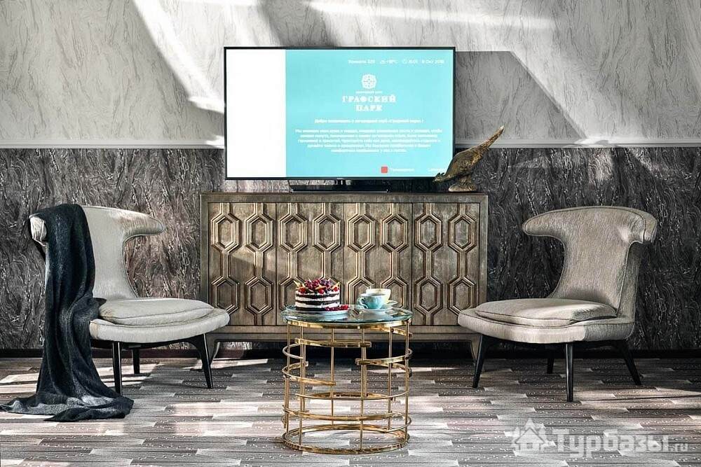 Номерной фонд оформлен в элегантной эстетике поместья и включает 67 номеров разных категорий — от практичных бизнес-комнат до просторных люксов и президентского сьюта в мансарде. Каждый номер сочетает классические детали и современные удобства: качественная кровать, санузел, климат-контроль и стильная отделка. Для гостей, которым нужна приватность и пространство, предусмотрены семейные люксы и варианты с увеличенной жилой площадью — это делает «Графский парк» удобным выбором и для деловых визитов, и для уик-эндов с семьёй.