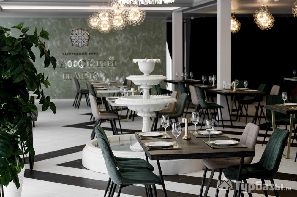 Гастрономическая часть комплекса сконцентрирована вокруг ресторана с несколькими залами: «Аванзал», Каминный зал и Винотека создают разный формат — от камерных ужинов у камина до торжественных банкетов. Кухня отеля делает ставку на авторские и сезонные позиции, а банкетная служба адаптирует меню под формат мероприятия. Летняя терраса у воды и бар у бассейна дополняют ресторанную концепцию, позволяя сочетать прием пищис видом на парк и бассейн.