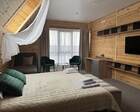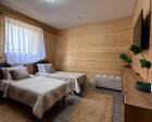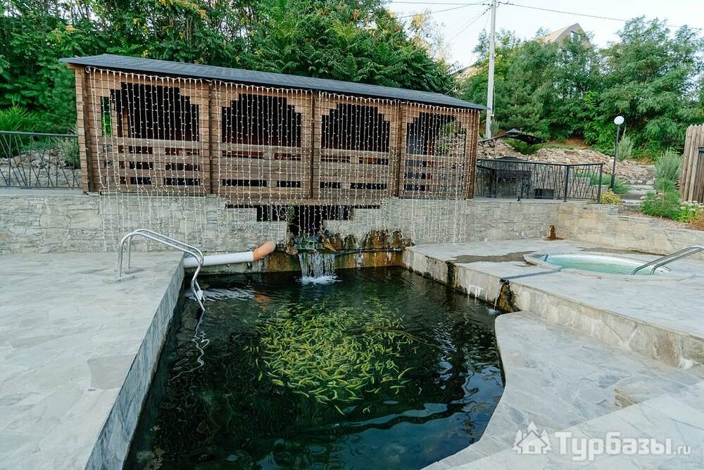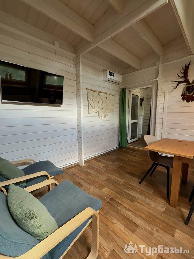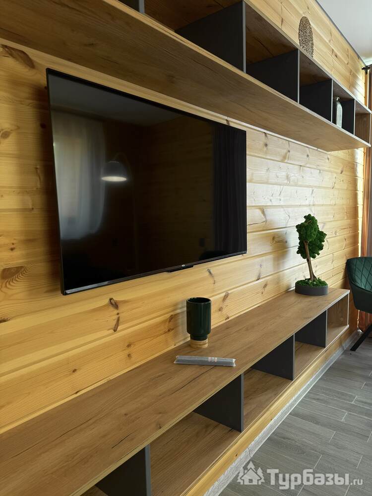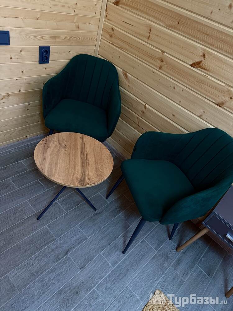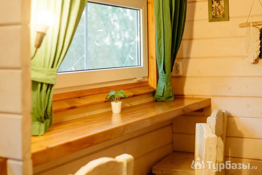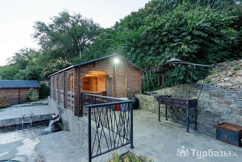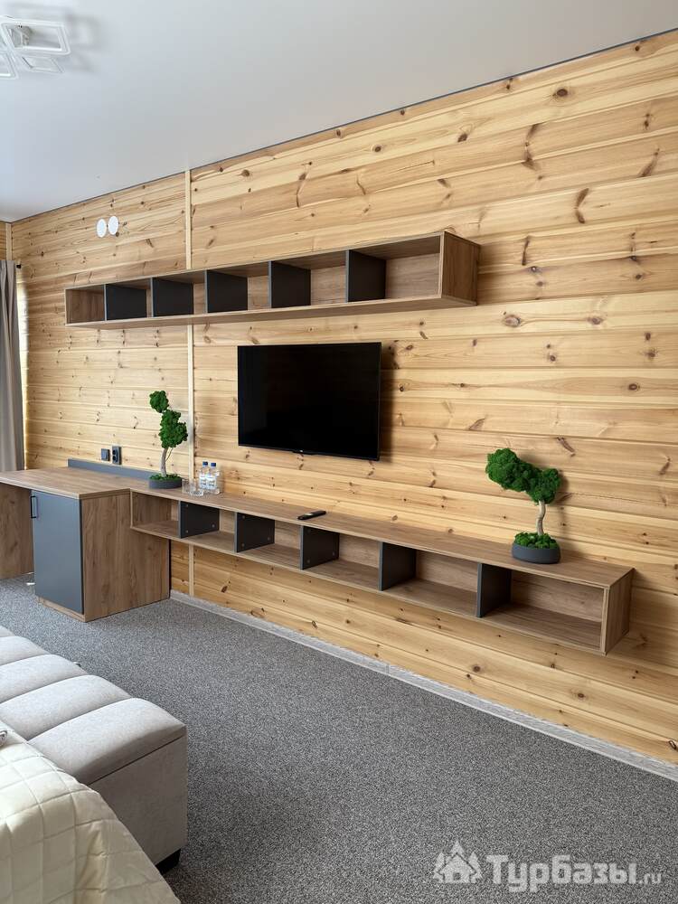 Парк-отель объединяет гостиничный корпус и тематические домики, оформленные в «горном» стиле — в карточках номеров встречаются названия вроде «Эльбрус», «Архыз», «Домбай», «Теберда» и др. Каждый домик оснащён отдельной спальней и санузлом; стандартный комплект удобств включает холодильник, микроволновку, smart-TV и посуду. В ряде домиков установлены банные чаны под открытым небом — приватная купель с подогревом, которую можно арендовать совместно с проживанием в соответствующем домике.