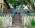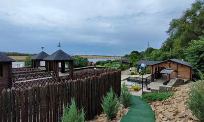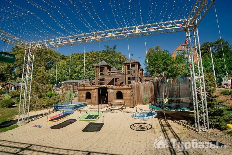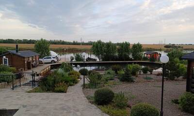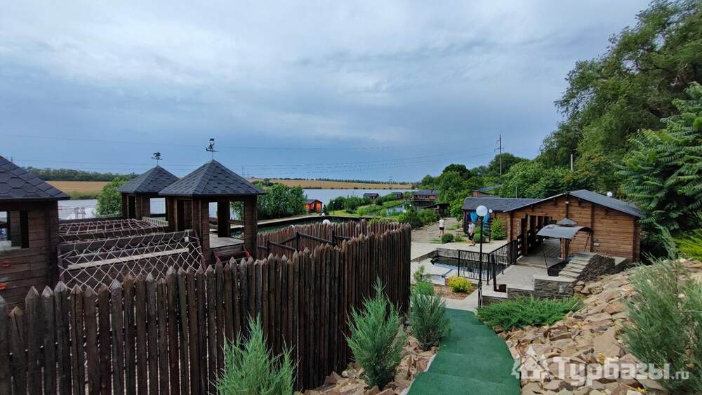 Эко-парк-отель «Карелия» находится у побережья в посёлке Новоприморский недалеко от Таганрога — просторная прибрежная площадка с выходом к заливу и зелёными лугами, где слышен только плеск воды и ветер в кронах. Такое расположение даёт ощущение загородного уединения и одновременно простую логистику для гостей из города: подъездные пути подготовлены, на территории предусмотрена охраняемая парковка и удобные места для дневного отдыха у беседок.