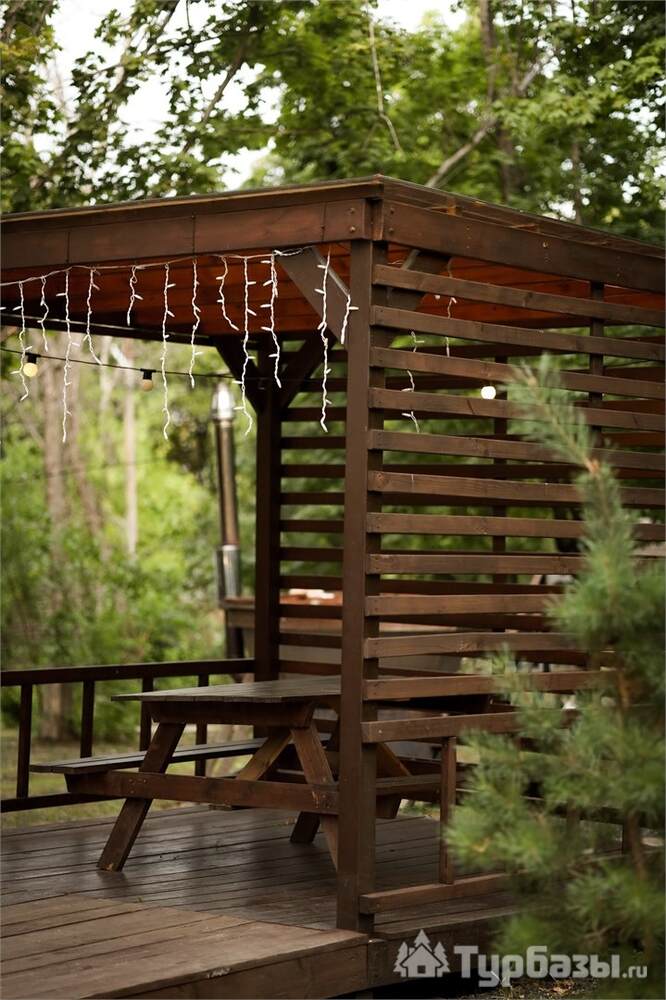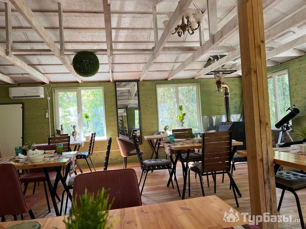 Питание организовано гибко: на территории работает кафе, где по меню доступны завтраки, обеды и ужины, а формат обслуживания позволяет заказать банкет или наборы для праздника. Параллельно у каждого домика и в общественных зонах есть оборудованные мангальные площадки — это удобный вариант для самостоятельных ужинов и барбекю на свежем воздухе. Администрация также предоставляет сервисы по доставке и подготовке блюд под мероприятие, что облегчает организацию семейных застолий и камерных праздников.