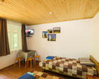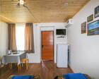 Территория такого комплекса оснащена электрифицированными беседками, мангалами, спортивной площадкой для игры в баскетбол. Есть костровая площадка, тир. Гостям предлагаются постирочные, бассейн и душевые. Можно арендовать лодку для прогулок, сходить в библиотеку. Туристам с детьми предоставлена детская площадка с качелями. Территория комплекса периодически выкашивается, проводится и противоклещевая обработка. За рыбалку в пляжной зоне и парковку платить не нужно. Туристам предлагается кафе-столовая с трехразовым питанием. В некоторых корпусах есть кухня.