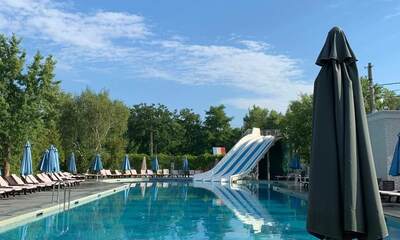 - Открытый плавательный бассейн с зоной шезлонгов и летней террасой — центр летней рекреации;