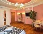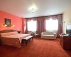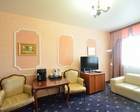 Площадь номера 40 кв.м. В НОМЕРЕ: двуспальная кровать, прикроватные тумбы, шкаф, багажная тумба, стол, полутораспальный диван, 2 полукресла, комод, туалетный стол, журнальный стол, сейф, мини-бар, холодильник, телефон, спутниковое ТВ, DVD, кондиционер, WiFi. чайная станция В ВАННОЙ: ванна с душем, фен, кнопка экстренного вызова, комплект полотенец, махровые халаты, тапочки, набор туалетных принадлежностей.