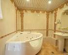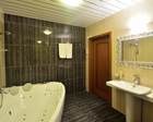 Площадь номера 100 кв.м. В НОМЕРЕ: 2 дивана, журнальный стол, камин, обеденный стол на 8 персон, барная стойка, мини-бар, сейф, спутниковое ТВ, кондиционер, WiFi, чайная станция, зонт, кофе-машина, двуспальная кровать, прикроватные тумбы, шкаф, туалетный стол, телефон. В ВАННОЙ: сауна, джакузи, фен, кнопка экстренного вызова, комплект полотенец, халаты, тапочки, набор туалетных принадлежностей, биде.