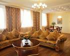Площадь номера 32 кв.м. В НОМЕРЕ: двуспальная кровать / две односпальные кровати, прикроватные тумбы, шкаф, кушетка, тумба, диван, 2 полукресла, комод, туалетный стол, пуфик, журнальный стол, сейф, холодильник, телефон, спутниковое ТВ, кондиционер, WiFi, чайная станция. В ВАННОЙ: ванна с душем, фен, кнопка экстренного вызова, комплект полотенец, туалетные принадлежности, тапочки, махровые халаты.